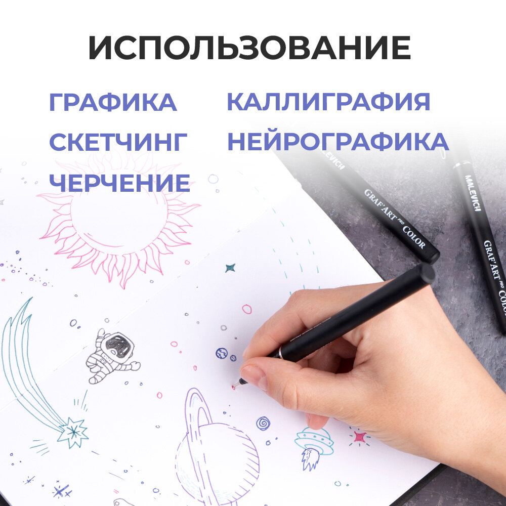 Набор цветных капиллярных ручек Малевичъ GrafArt PRO, цветные линеры "дальний космос", 8 шт интересное: