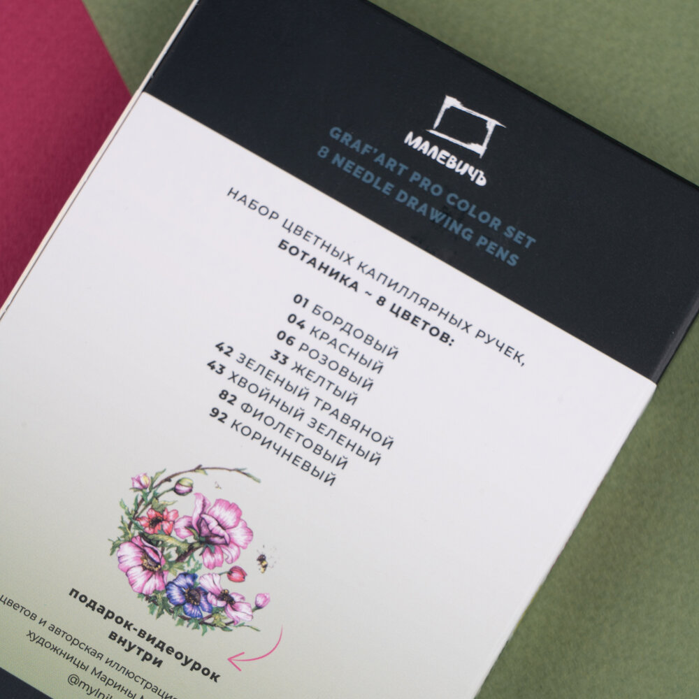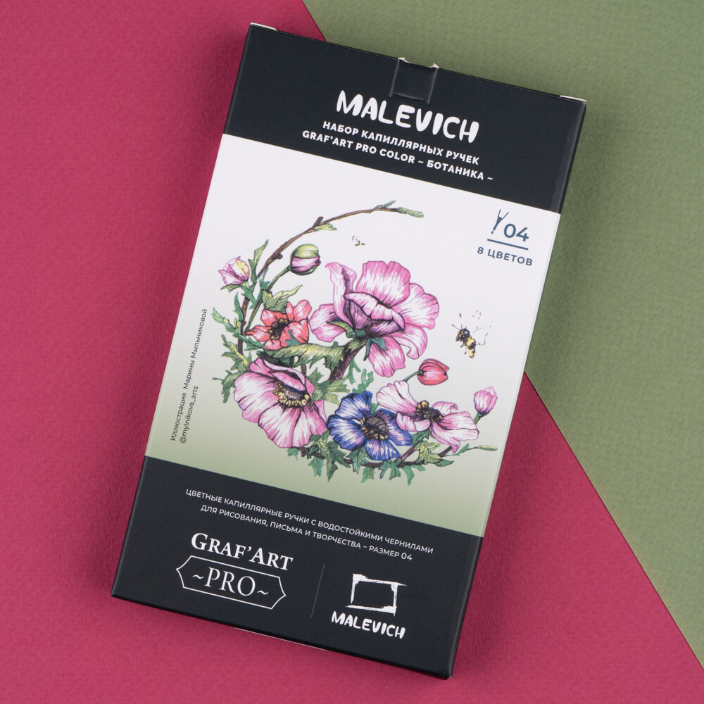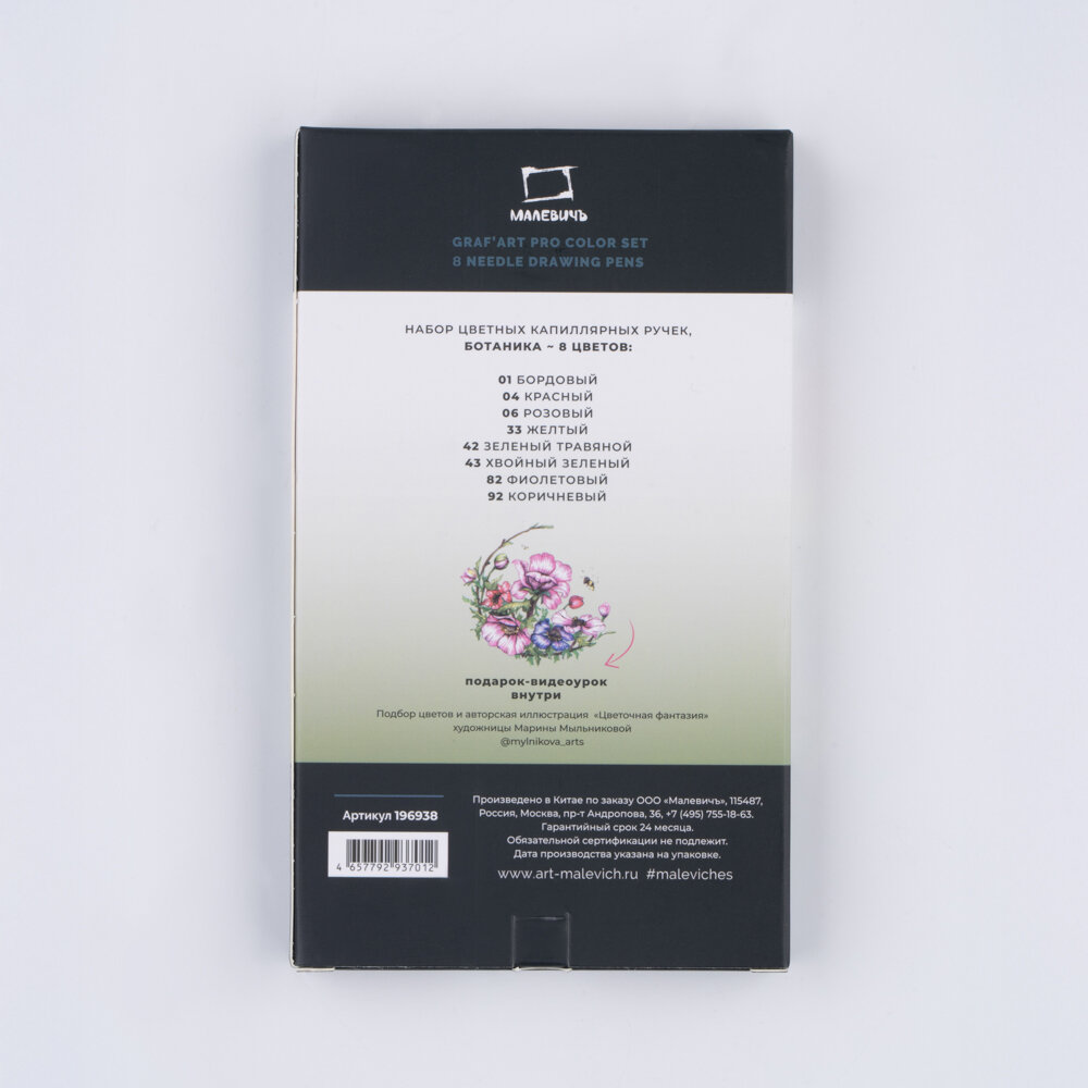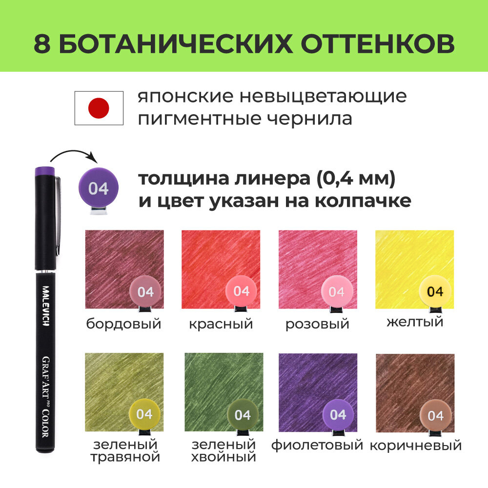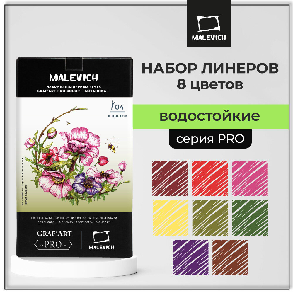 Набор цветных капиллярных ручек Малевичъ GrafArt PRO, цветные линеры "ботаника", 8 шт интересное: