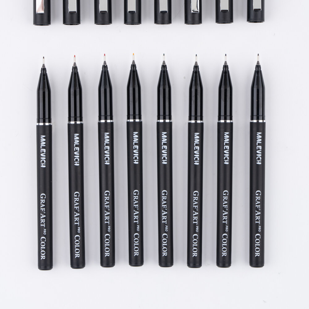 Набор цветных капиллярных ручек Малевичъ GrafArt PRO, базовые линеры цветные, 12 шт