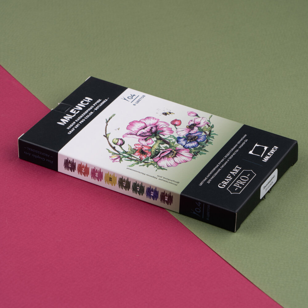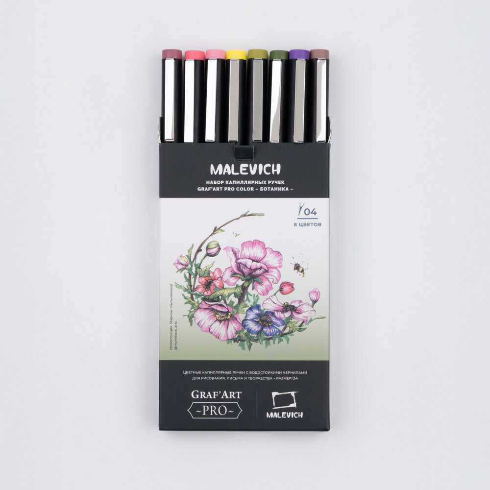 Купить Набор цветных капиллярных ручек Малевичъ GrafArt PRO, цветные линеры "ботаника", 8 шт