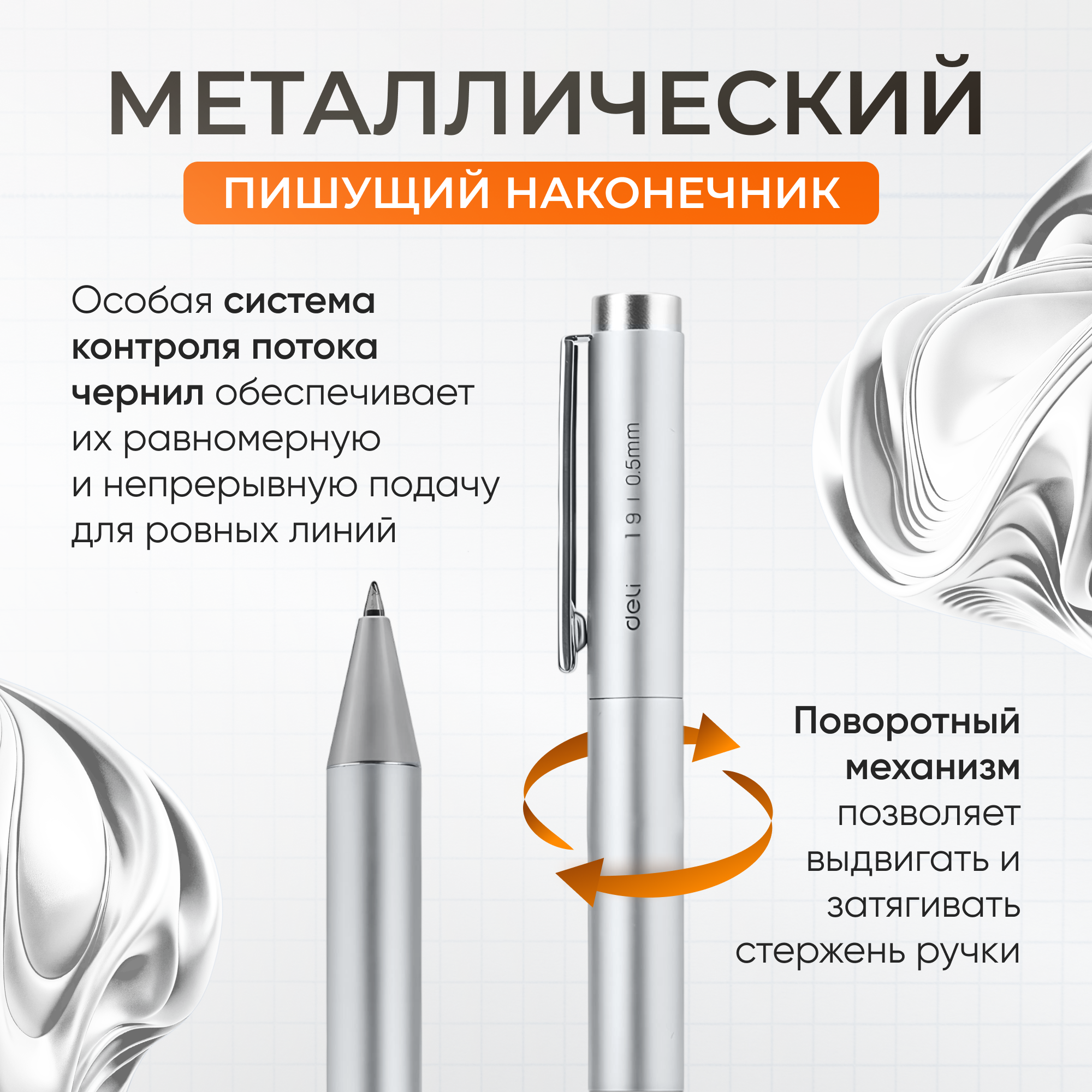Ручка Xiaomi Deli S99 с металлическим корпусом (цвет - серебро) интересное: