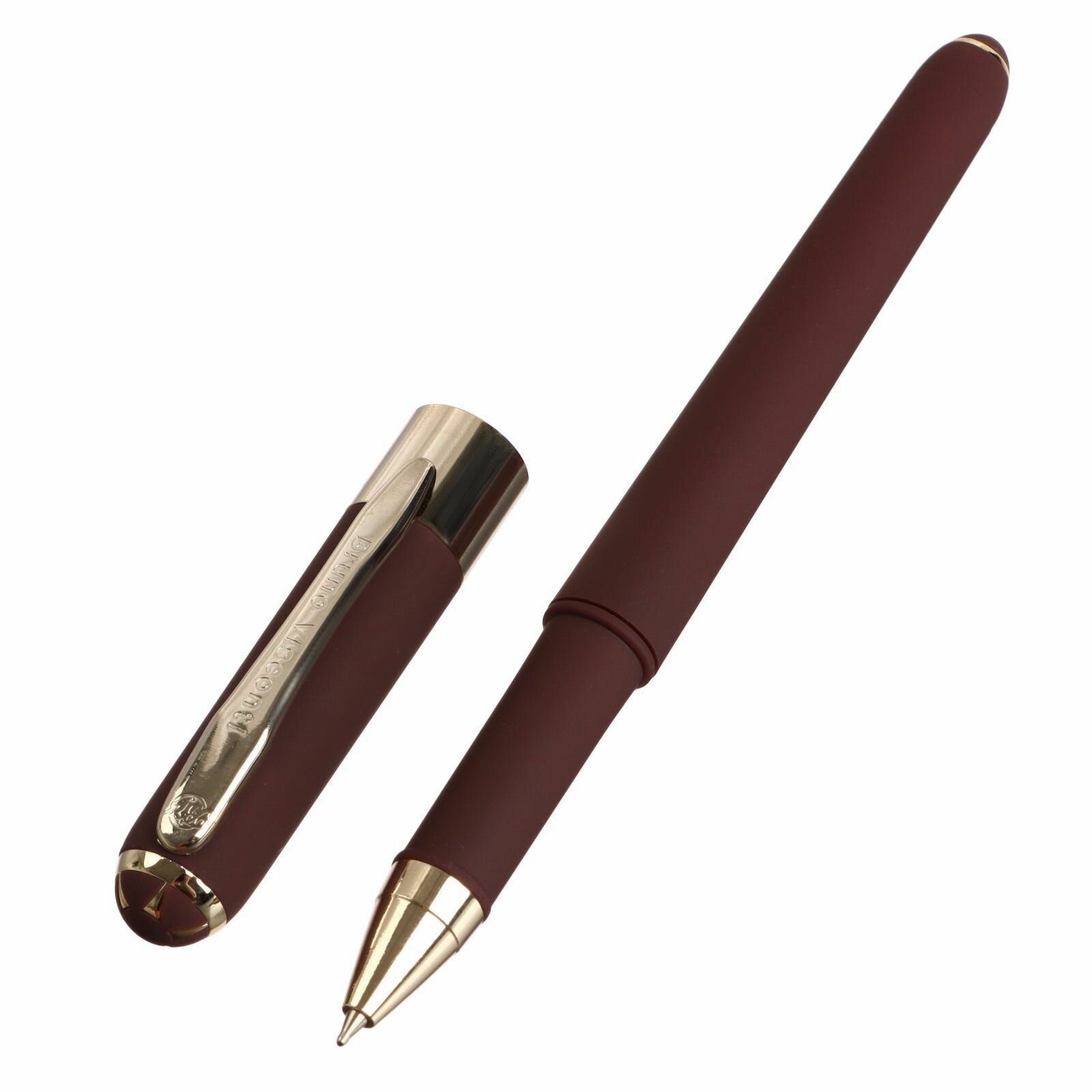 Ручка в футляре "MONACO" шариковая 0.5 ММ, синяя (бордовый корпус, коричневая коробка)