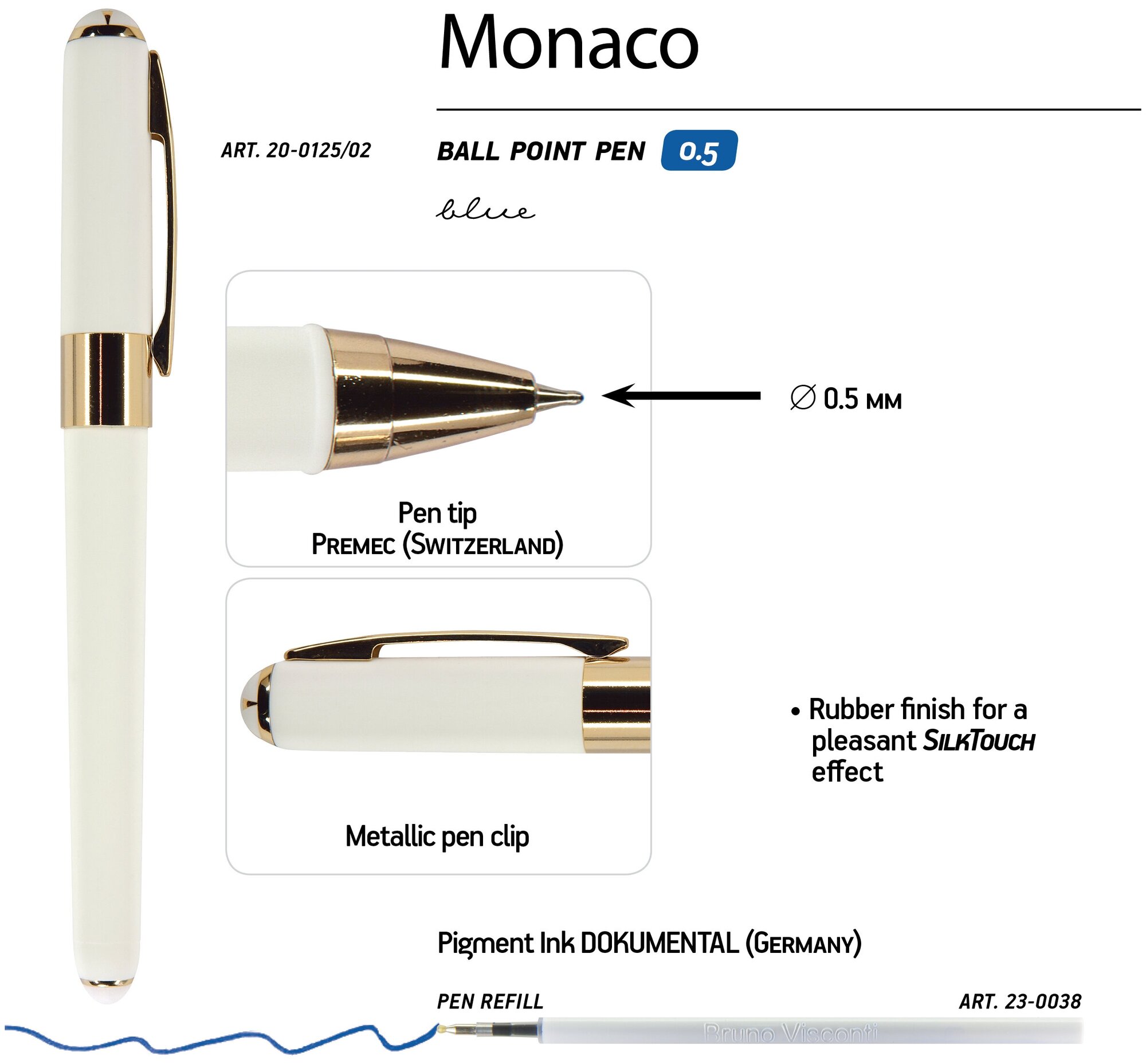 Купить Ручка шариковая BrunoVisconti, 0,5 мм, синяя, Monaco (белый корпус), Арт. 20-0125/02