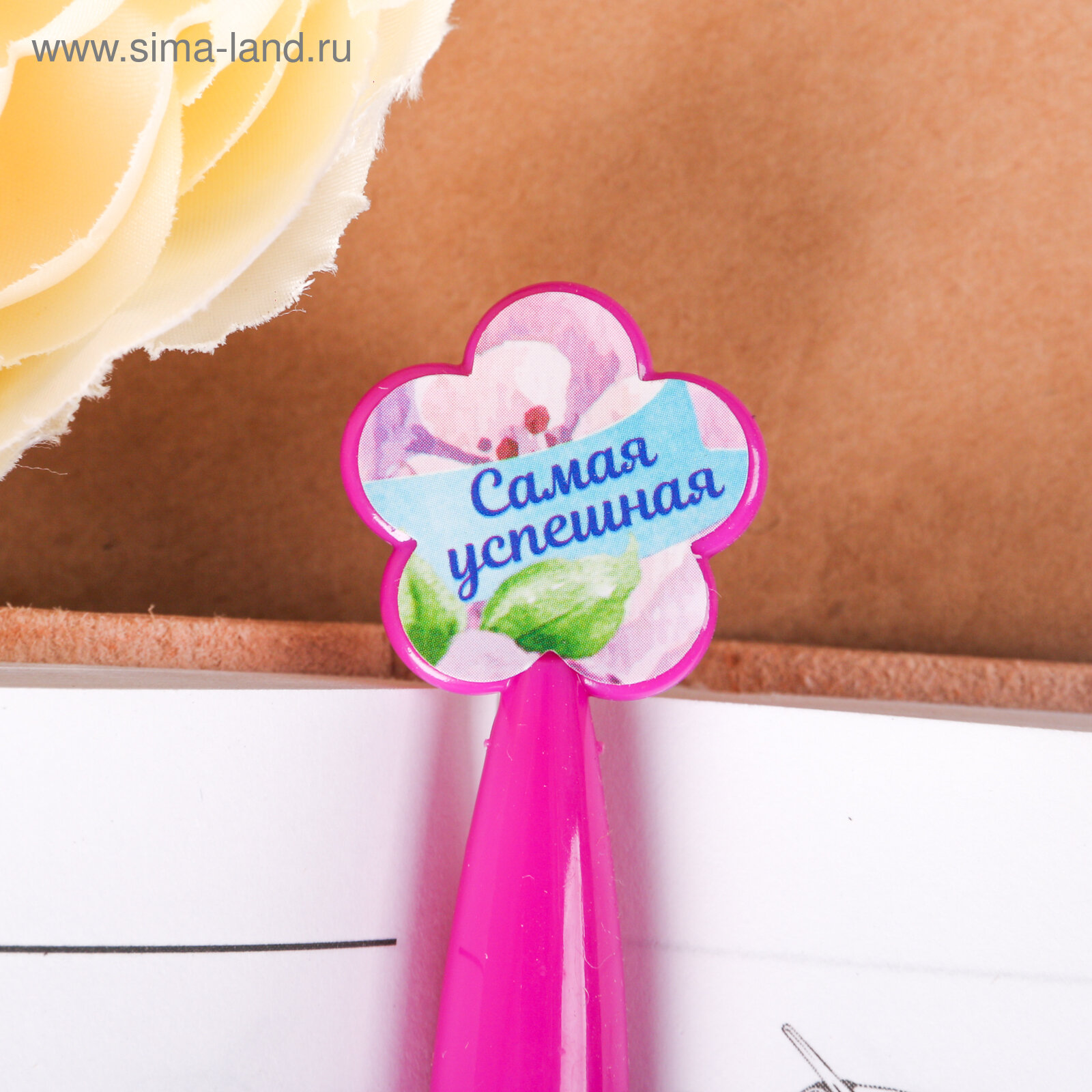 Купить Ручка с цветком "Удачи в делах" на подарочной открытке, пластиковый корпус, синяя паста 1.0 мм