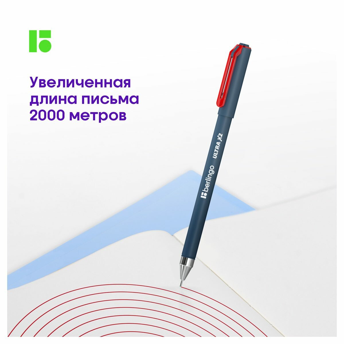 Ручка шариковая Berlingo Ultra X2 синяя, набор 12 штук, толщина линии письма 0,5 мм