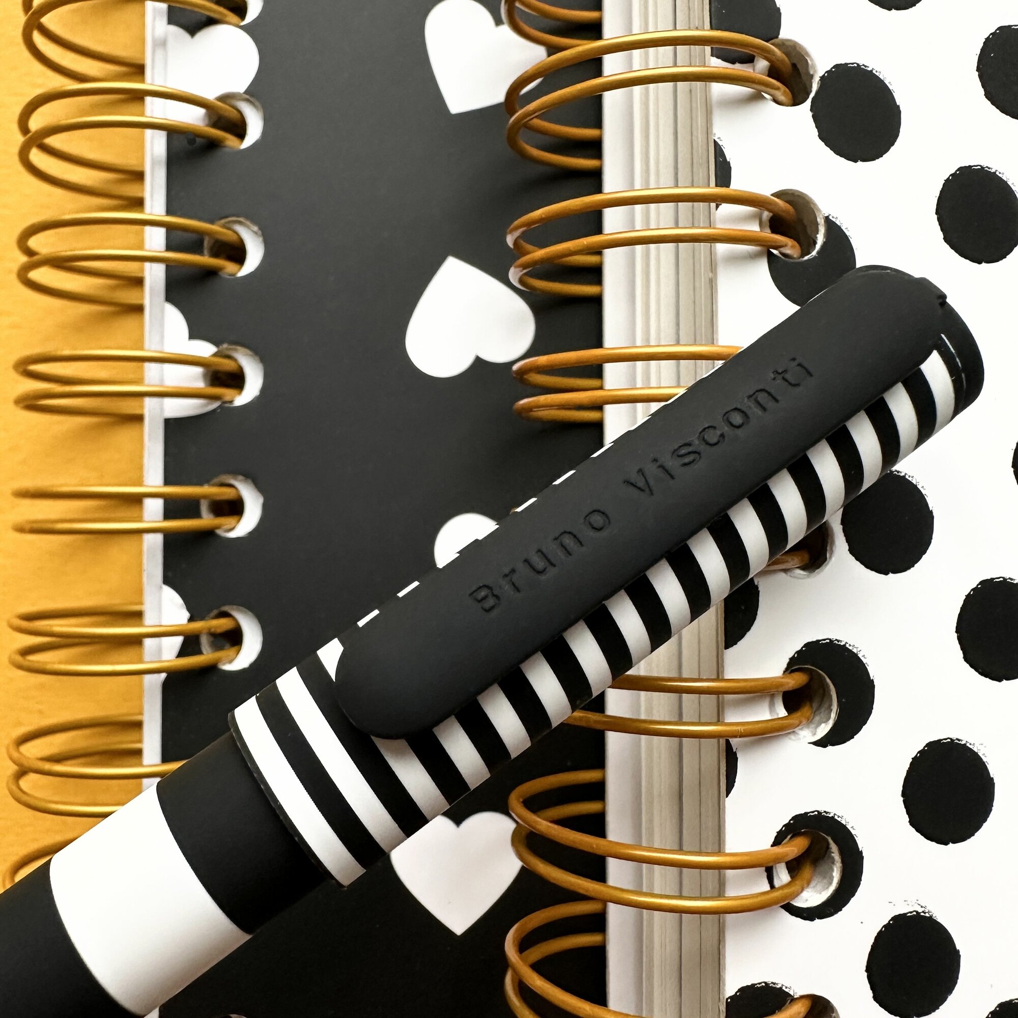 Подарочная ручка шариковая синяя Bruno Visconti "DreamWrite. Black&White. Полоски", в тубусе, 0.7 мм, soft touch / красивая ручка в полоску арт.20-0264/19-3