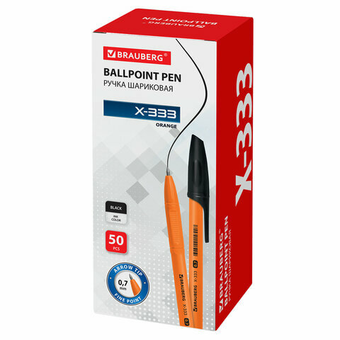 Ручка шариковая Brauberg X-333 Orange (0.35мм, черная, корпус оранжевый) (142410), 50шт.