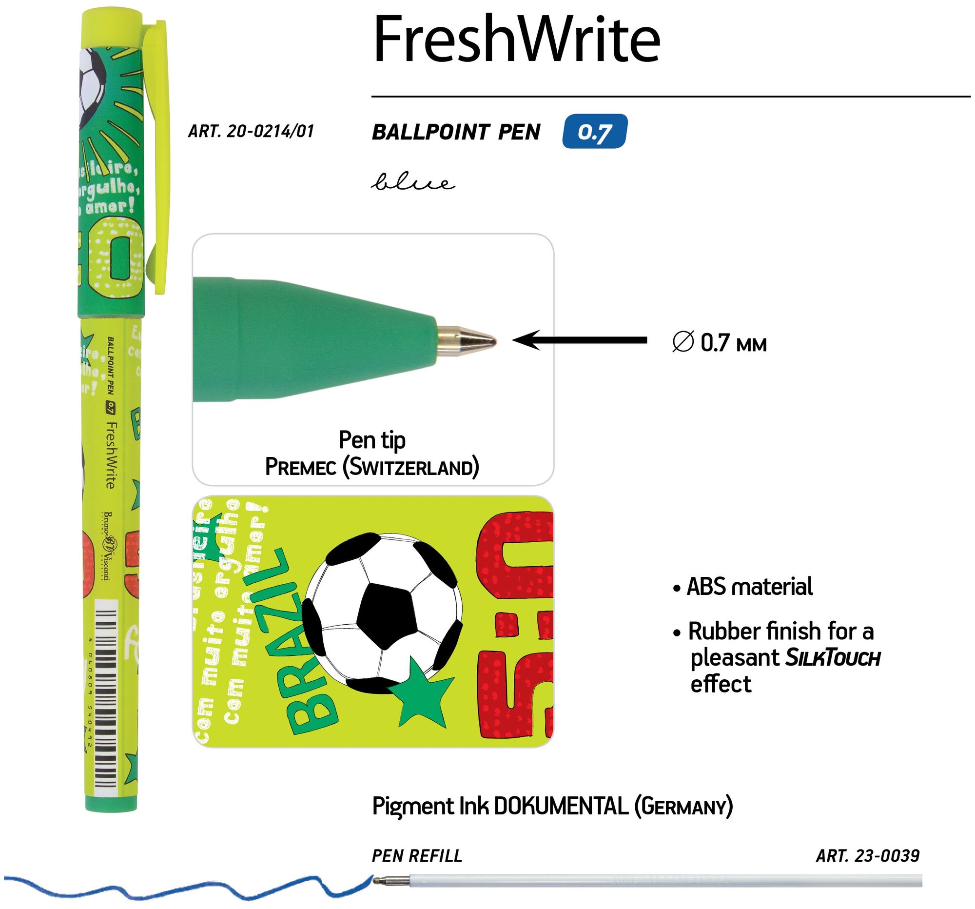 Ручка шариковая BrunoVisconti, 0.7 мм, синий, FreshWrite «футбол. чемпионы. Бразилия», Арт. 20-0214/105 интересное: