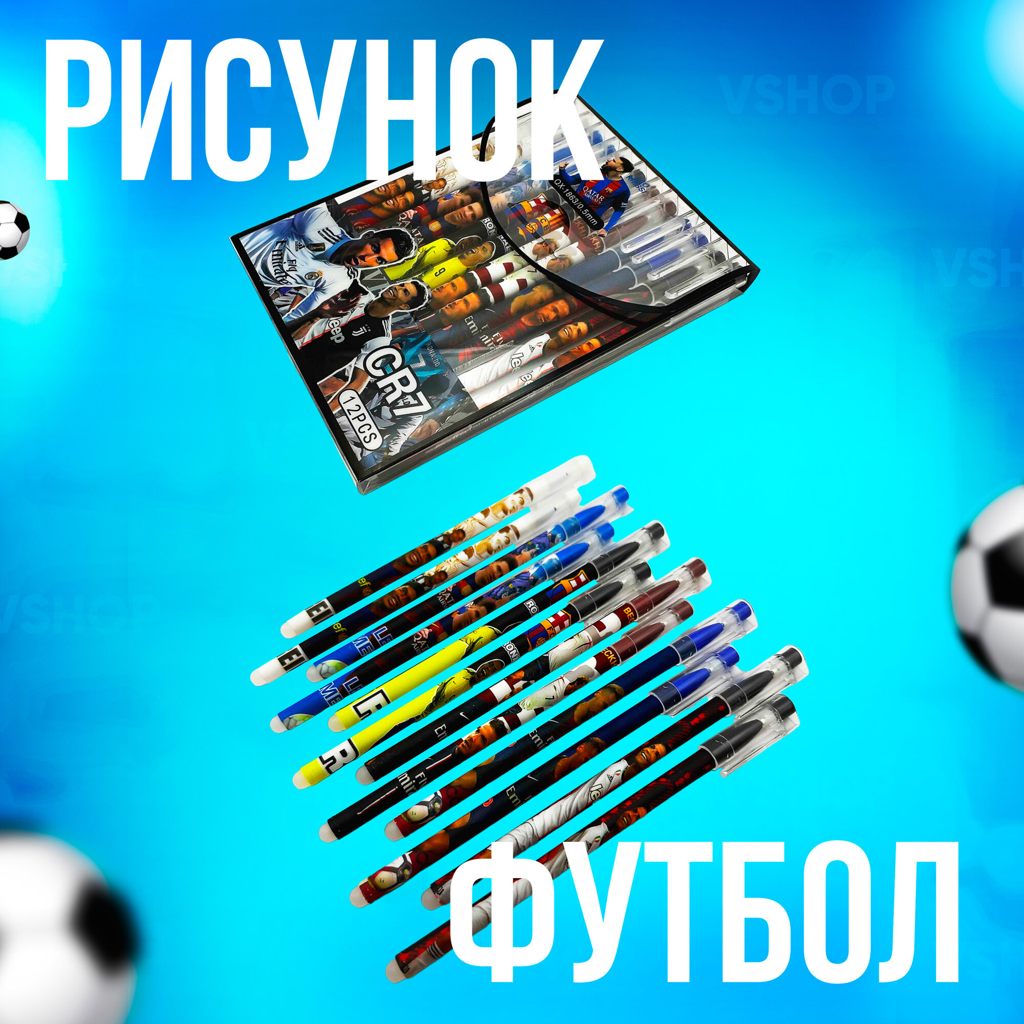 Купить Набор из синих гелевых ручек Пиши-стирай для школы Футбол 12шт