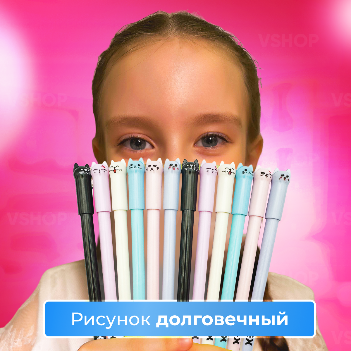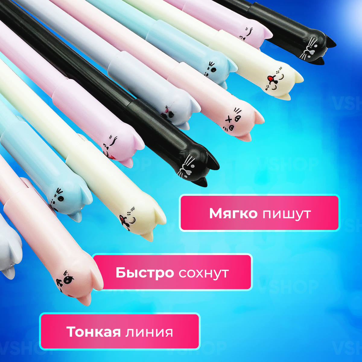 Купить Набор из синих гелевых ручек Пиши-стирай для школы Котики 12шт