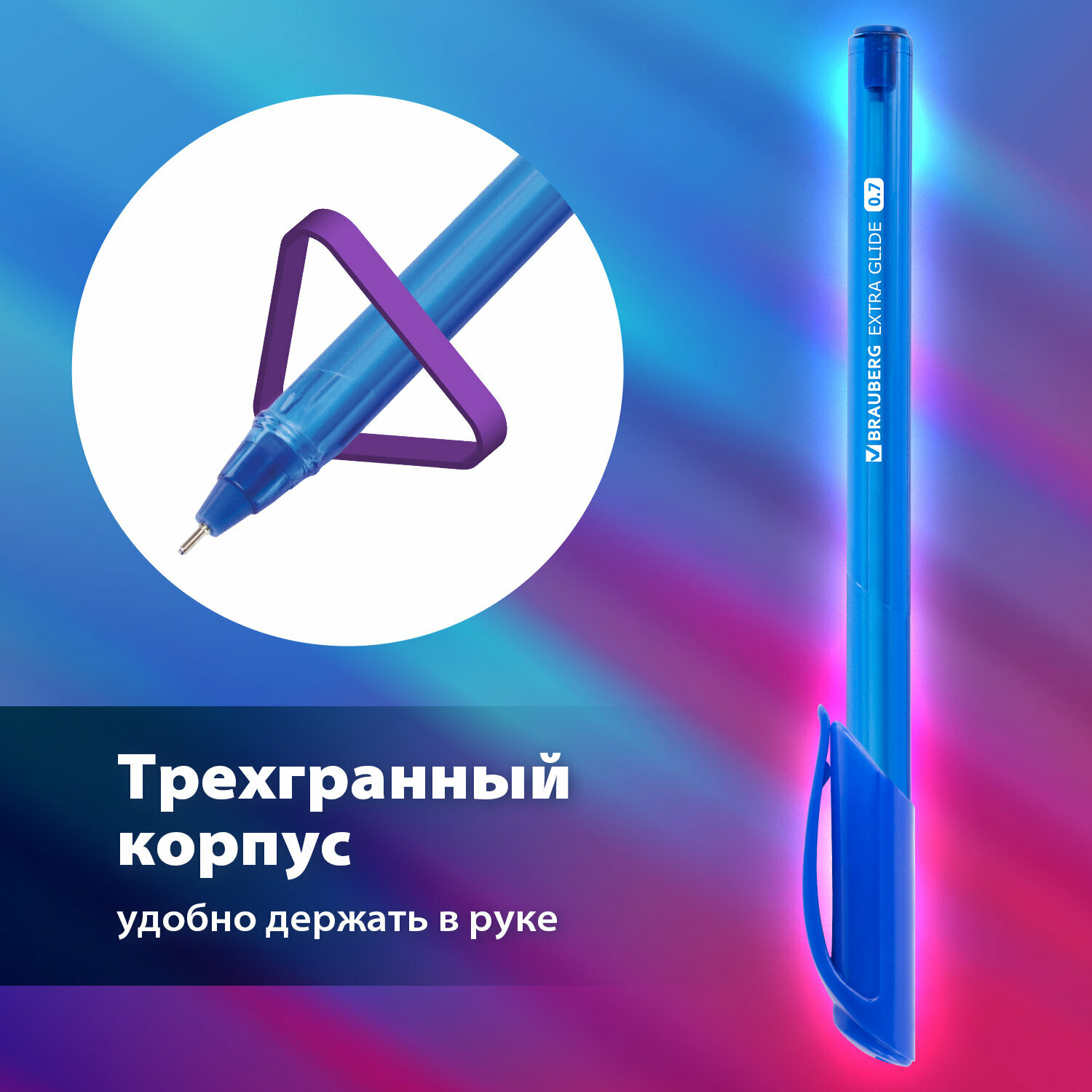 Ручка шариковая масляная BRAUBERG "Extra Glide Tone", синяя, трехгранная, узел 0,7 мм, линия письма 0,35 мм, 142924 (арт. 142924)