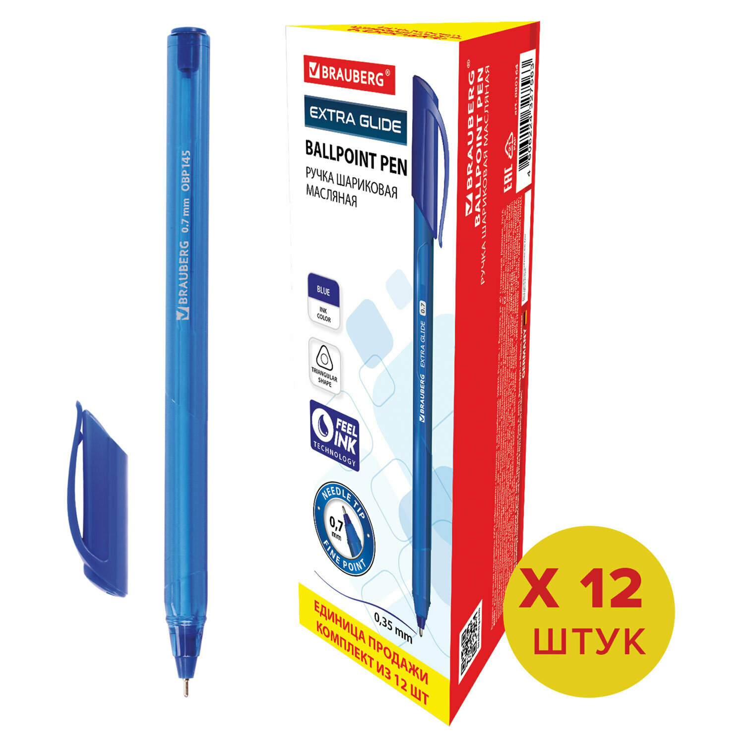Ручка шариковая Brauberg Extra Glide Gt Tone, синяя, Выгодный Комплект 12 штук, узел 0,7 мм, линия письма 0,35мм, 880733