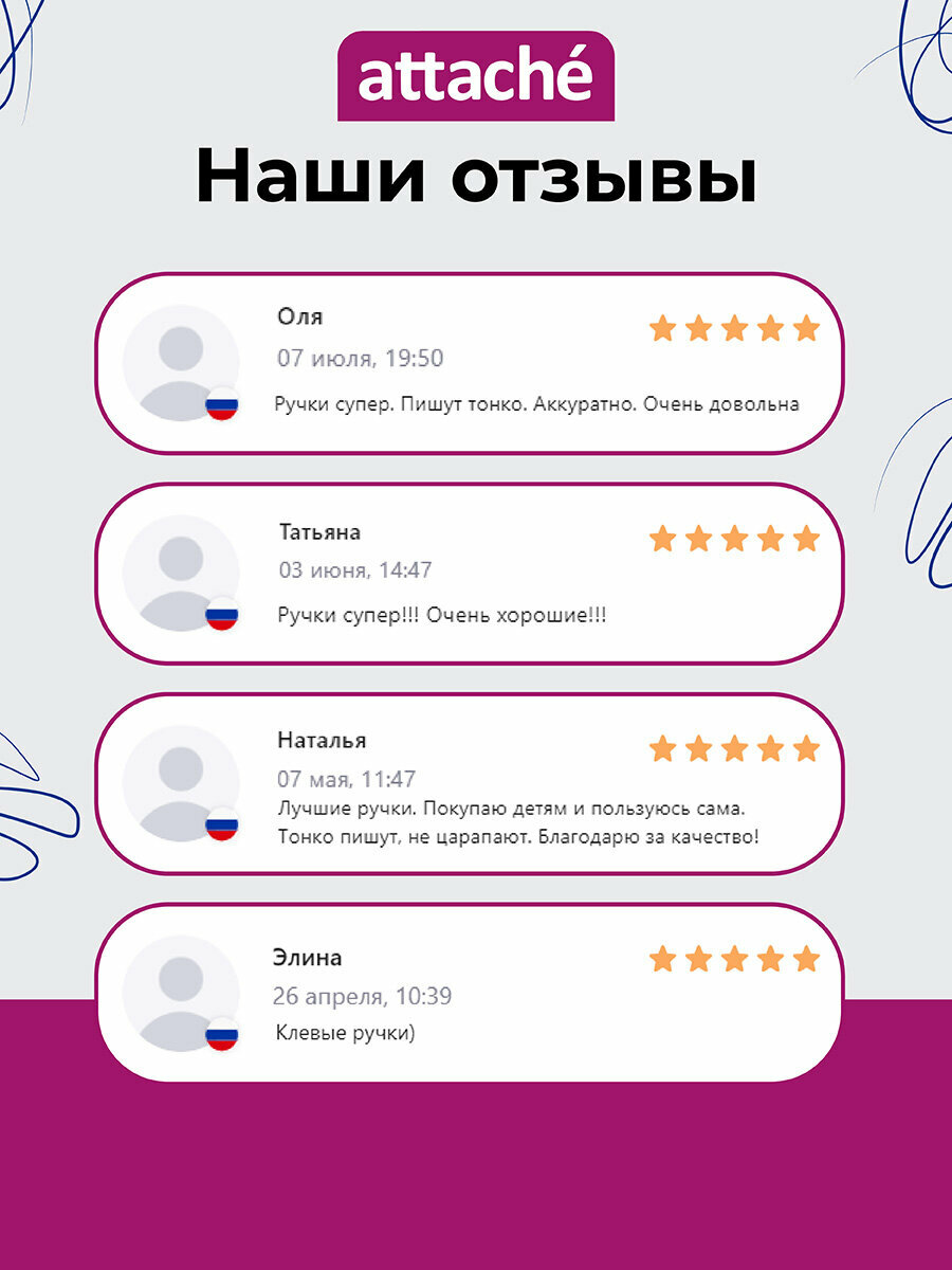 Ниже Вы можете прочитать отзывы на Ручка шариковая Attache Essay, масляные чернила, цветные, 0.5 мм, набор 10 штук, ознакомится с подробными характеристиками, посмотреть интересные обзоры и фотографии на Ручка шариковая Attache Essay, масляные чернила, цветные, 0.5 мм, набор 10 штук.