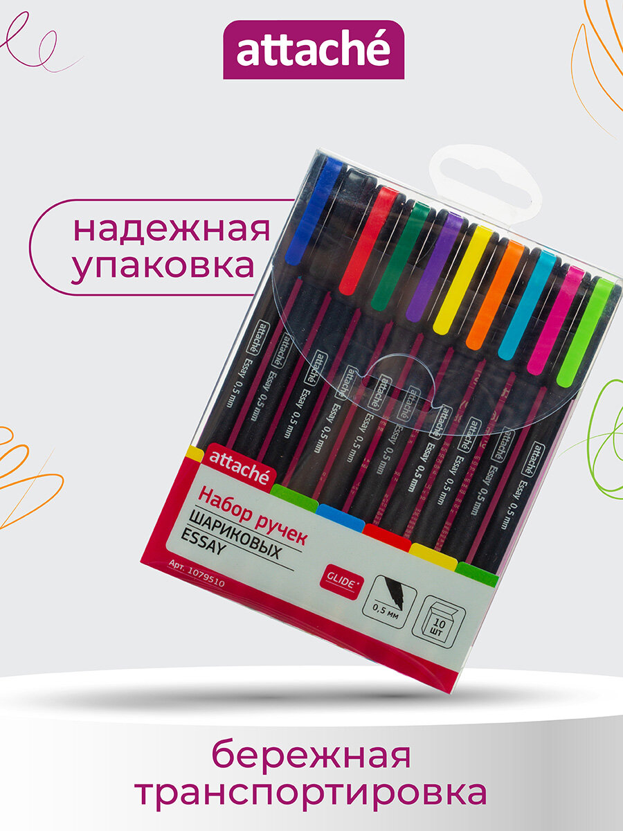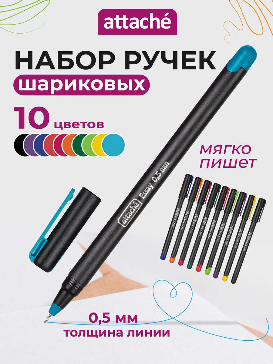 Купить Ручка шариковая Attache Essay, масляные чернила, цветные, 0.5 мм, набор 10 штук