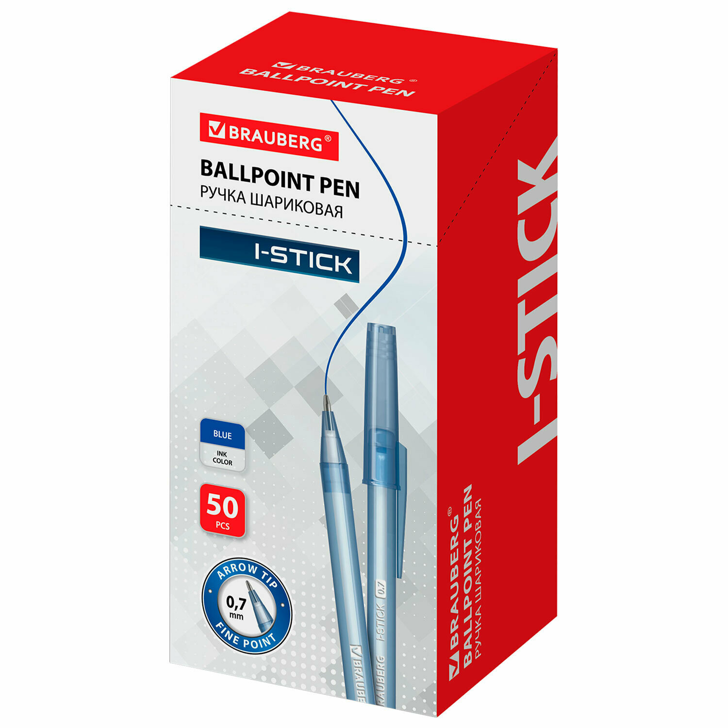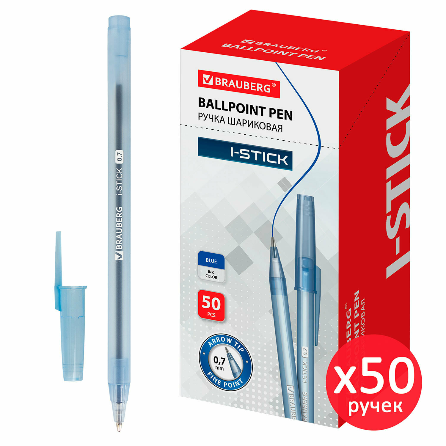 Купить Ручка шариковая BRAUBERG I-Stick, комплект 50 штук, синяя, узел 0,7 мм, линия письма 0,35 мм, 880154