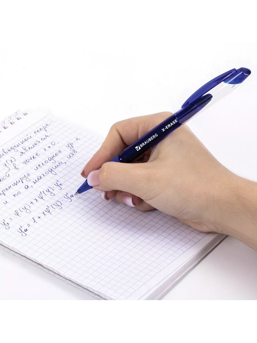 Ручка BRAUBERG X-ERASE, стираемая, гелевая, синяя, с ластиком, 1 штука