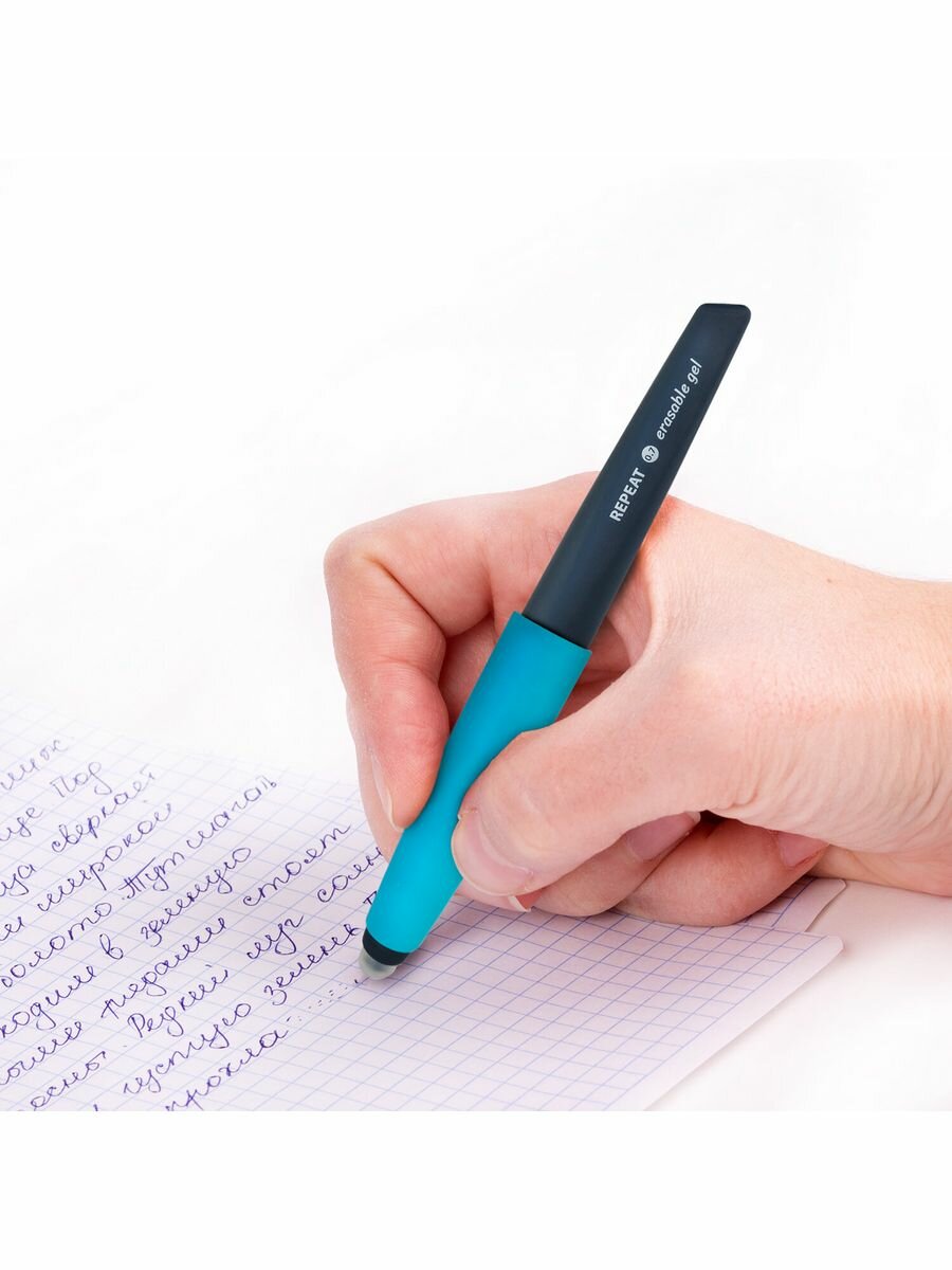 Ручка стираемая гелевая с эргономичным грипом BRAUBERG REPEAT, синяя, узел 0,7мм, линия 0,5мм,143662