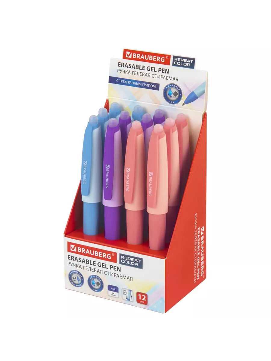 Купить Ручка BRAUBERG REPEAT COLOR "Пиши-Стирай", гелевая, синие чернила, линия письма 0,5 мм, 12 штук