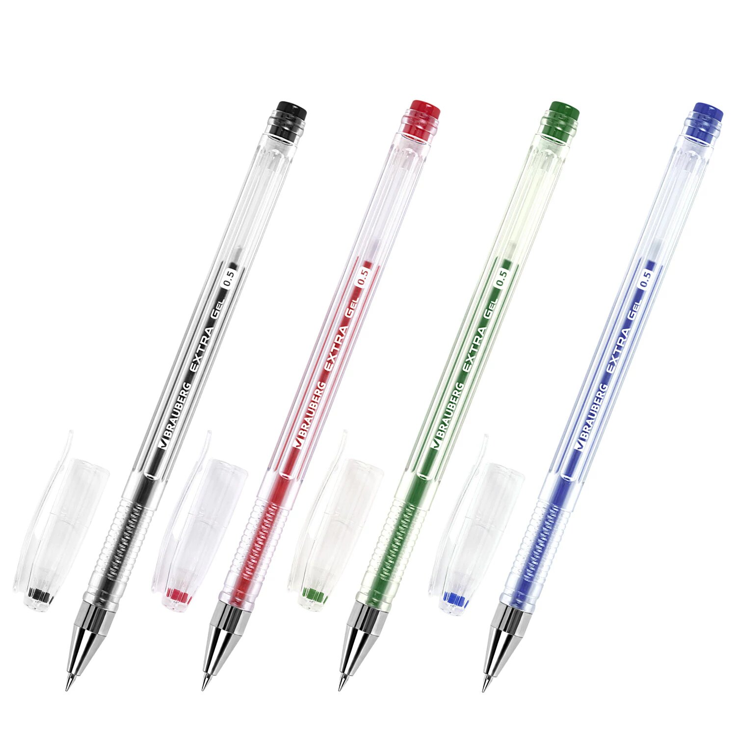 Купить Гелевые ручки цветные набор 4 штуки для школы тонкие, узел 0,5 мм, линия 0,35 мм, Brauberg Extra, 143905