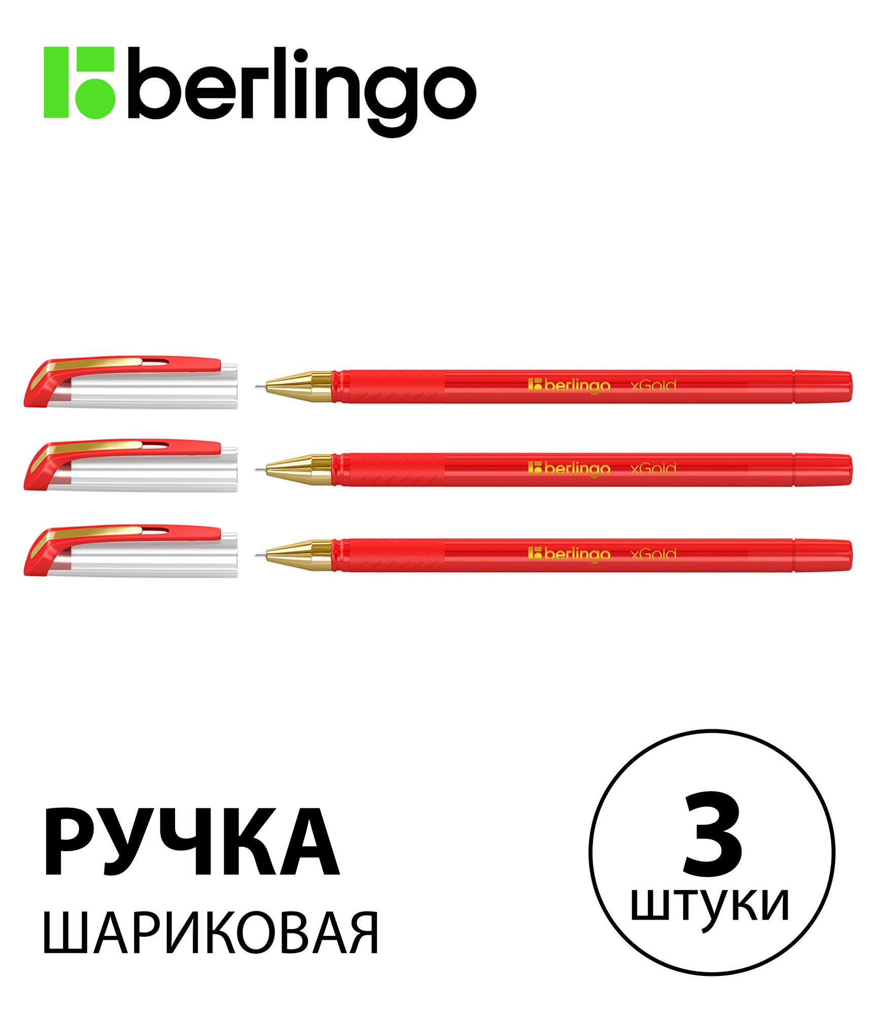 Купить Набор 3 шт. - Ручка шариковая Berlingo "xGold" красная, 0,7 мм, игольчатый стержень, с грипом CBp_07502