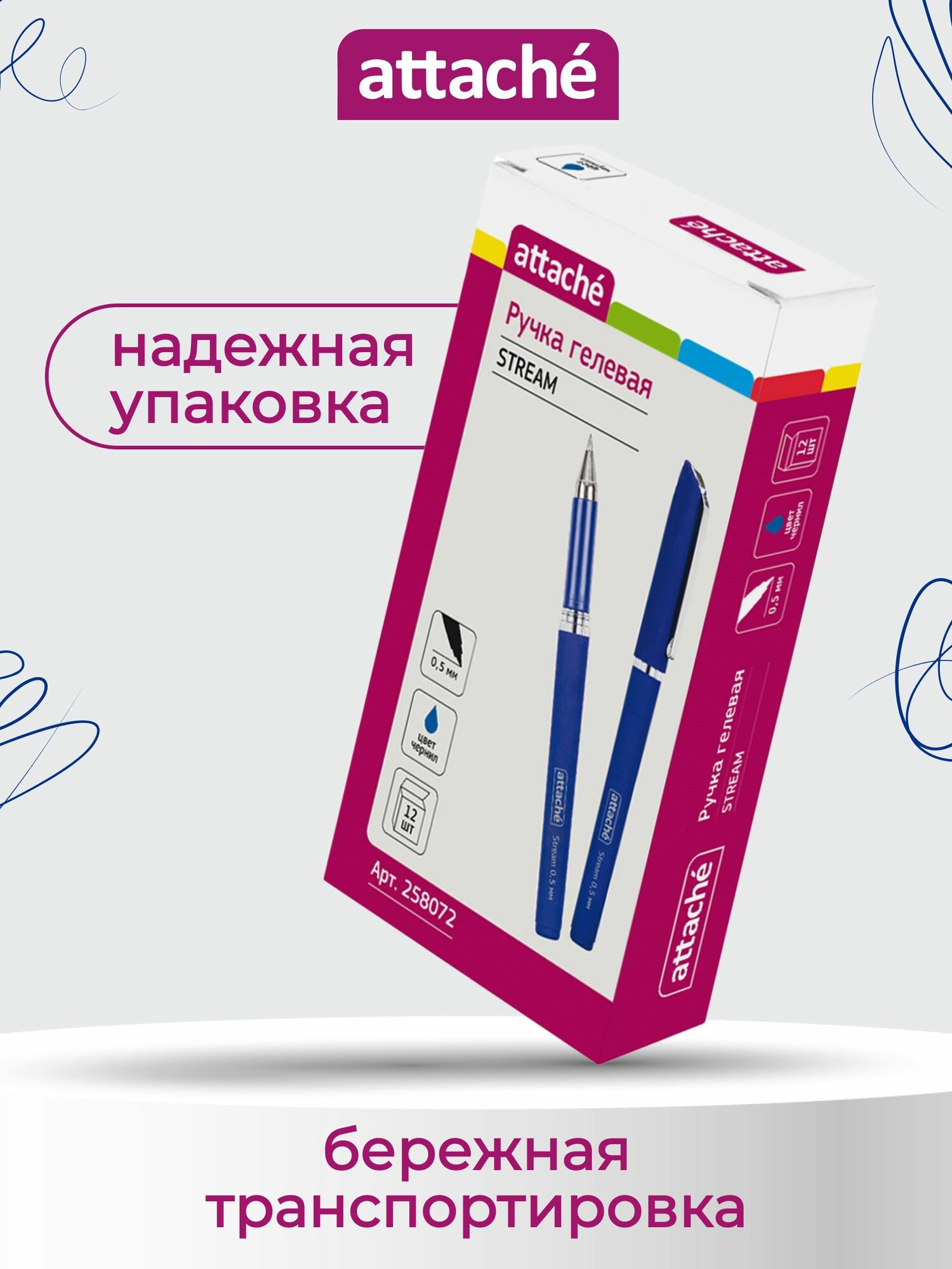 Купить Ручки гелевые Attache, синие, линия 0.5 мм, набор 12 шт