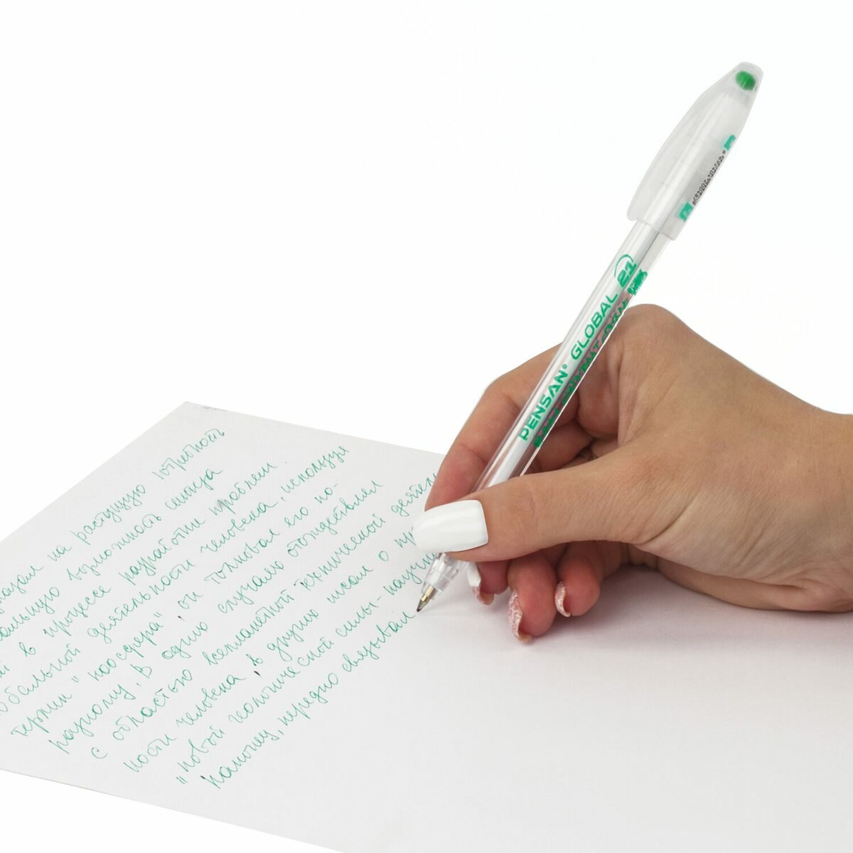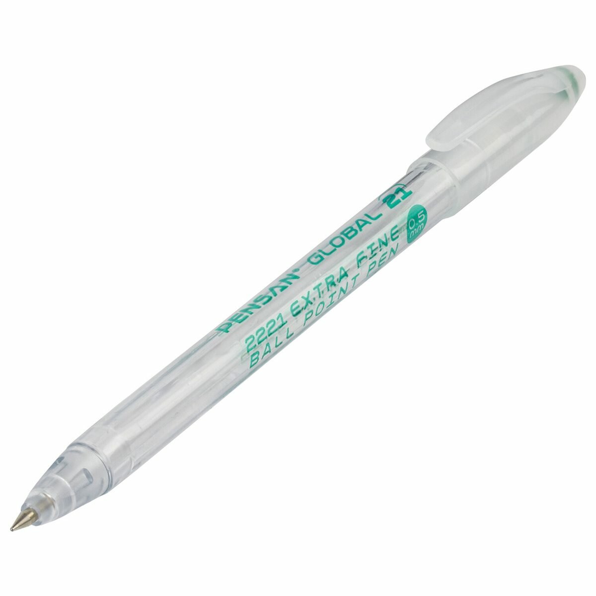 Купить Ручка шариковая Pensan Global-21 (0.3мм, зеленая, корпус прозрачный, масляная основа) (2221/12), 1шт.