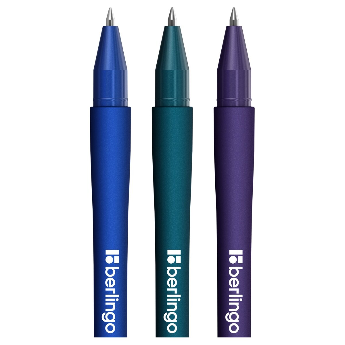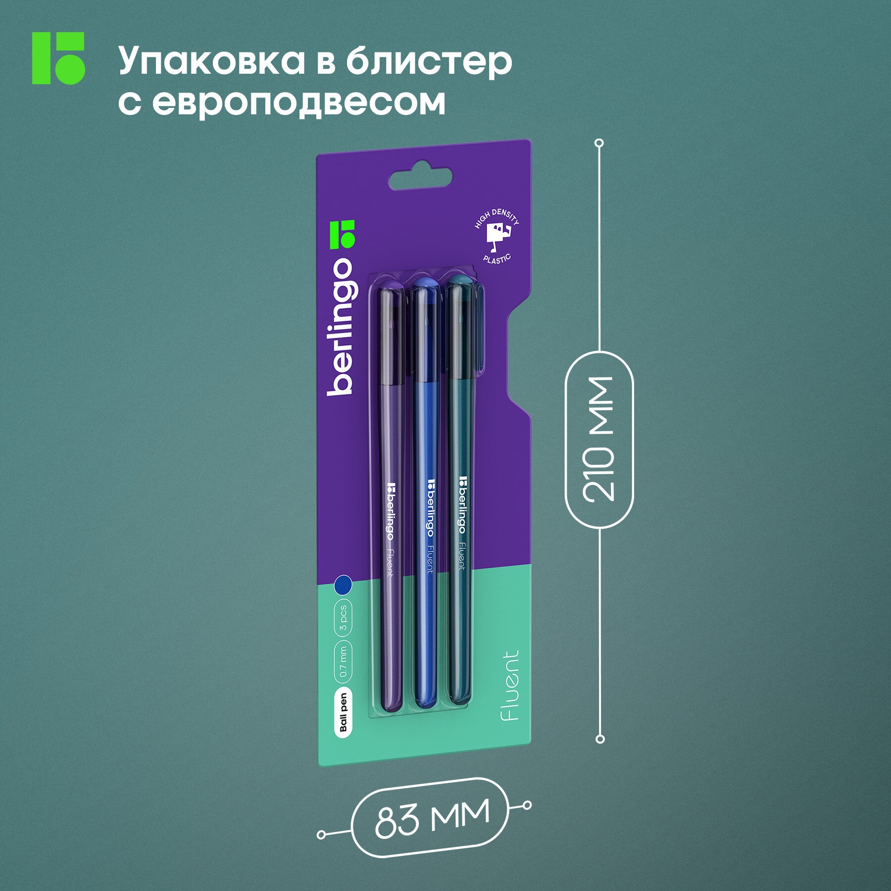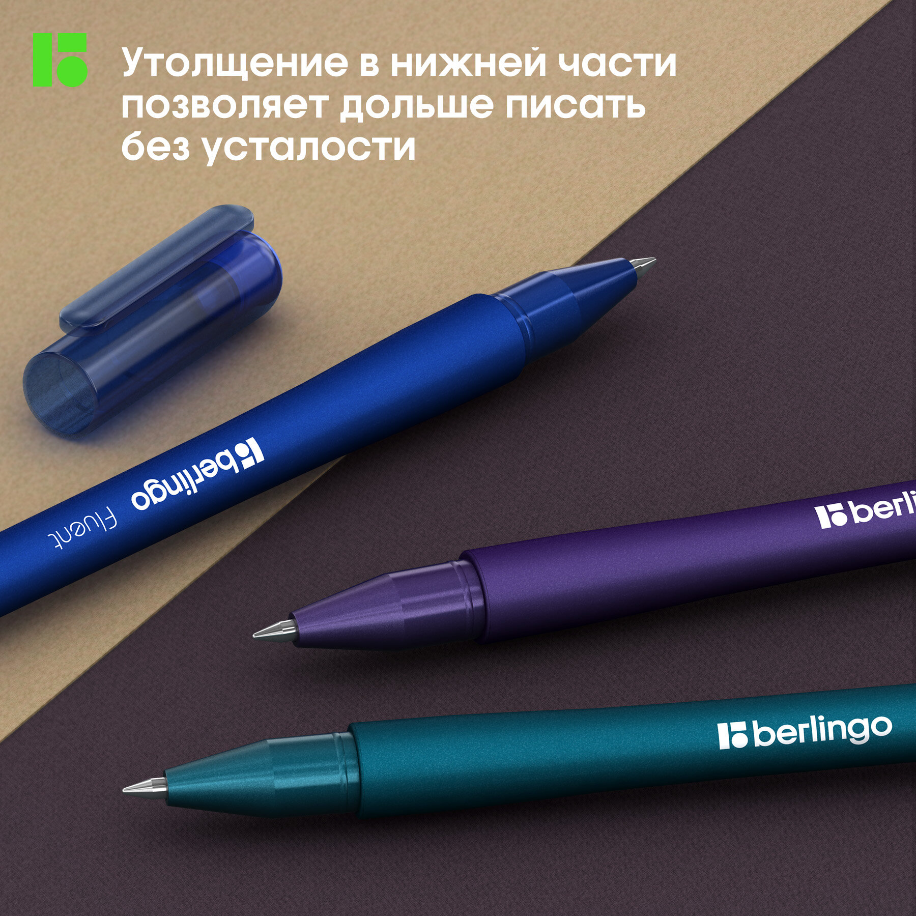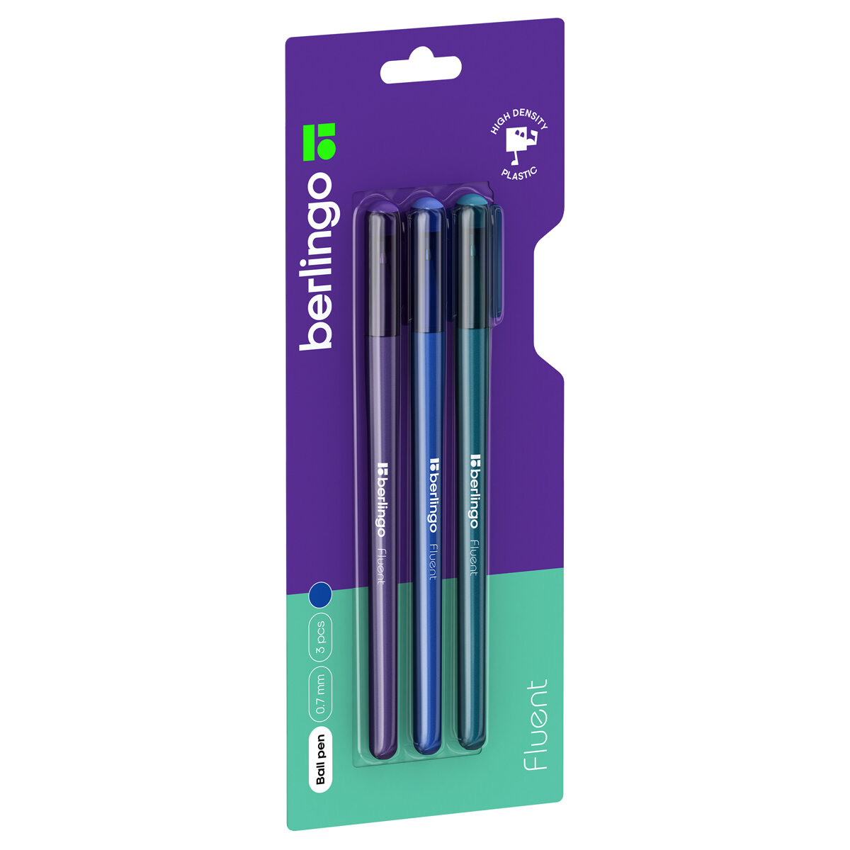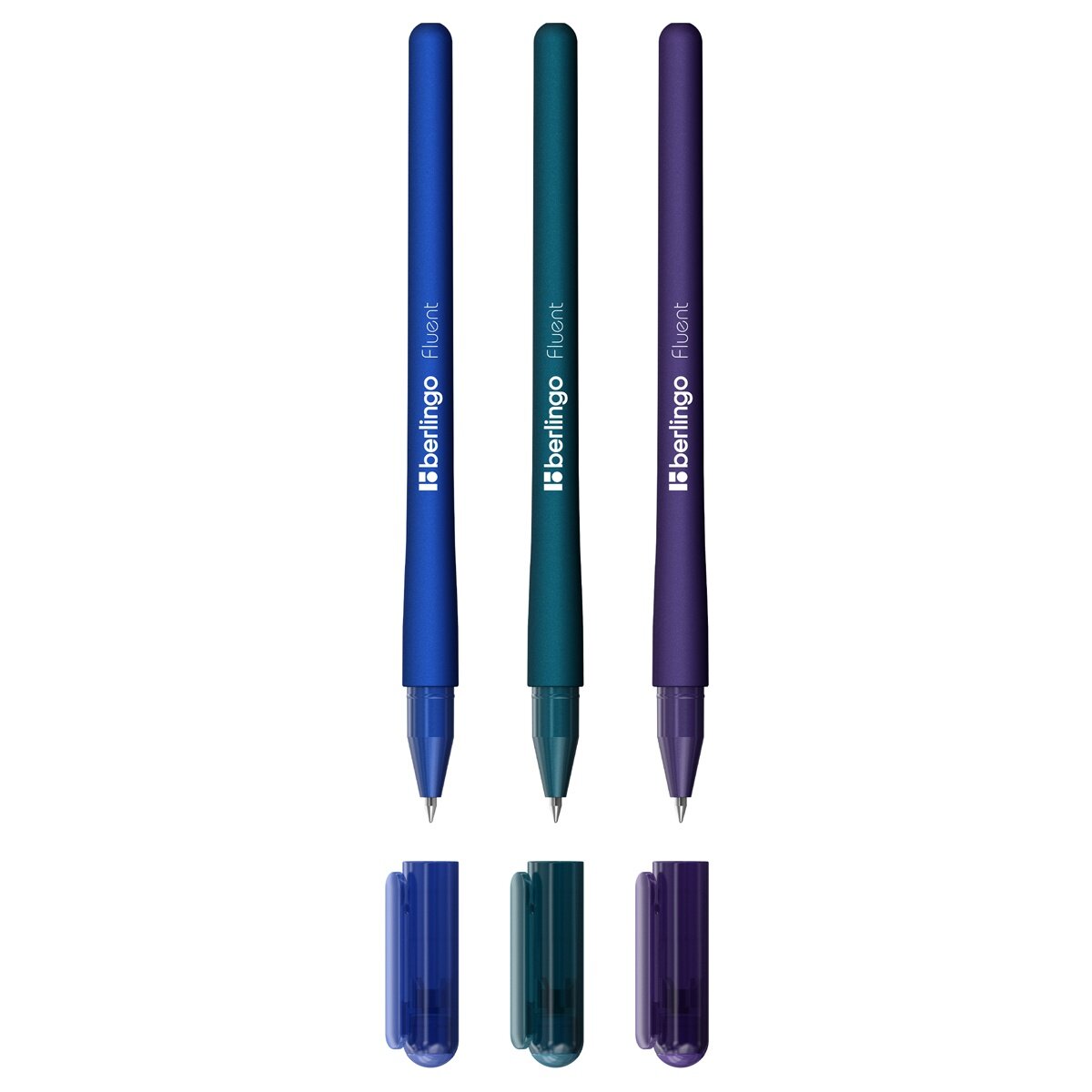 Купить Ручка шариковая Berlingo "Fluent" синяя, 0,7мм, металлопласт, soft touch, 3шт, блистер
