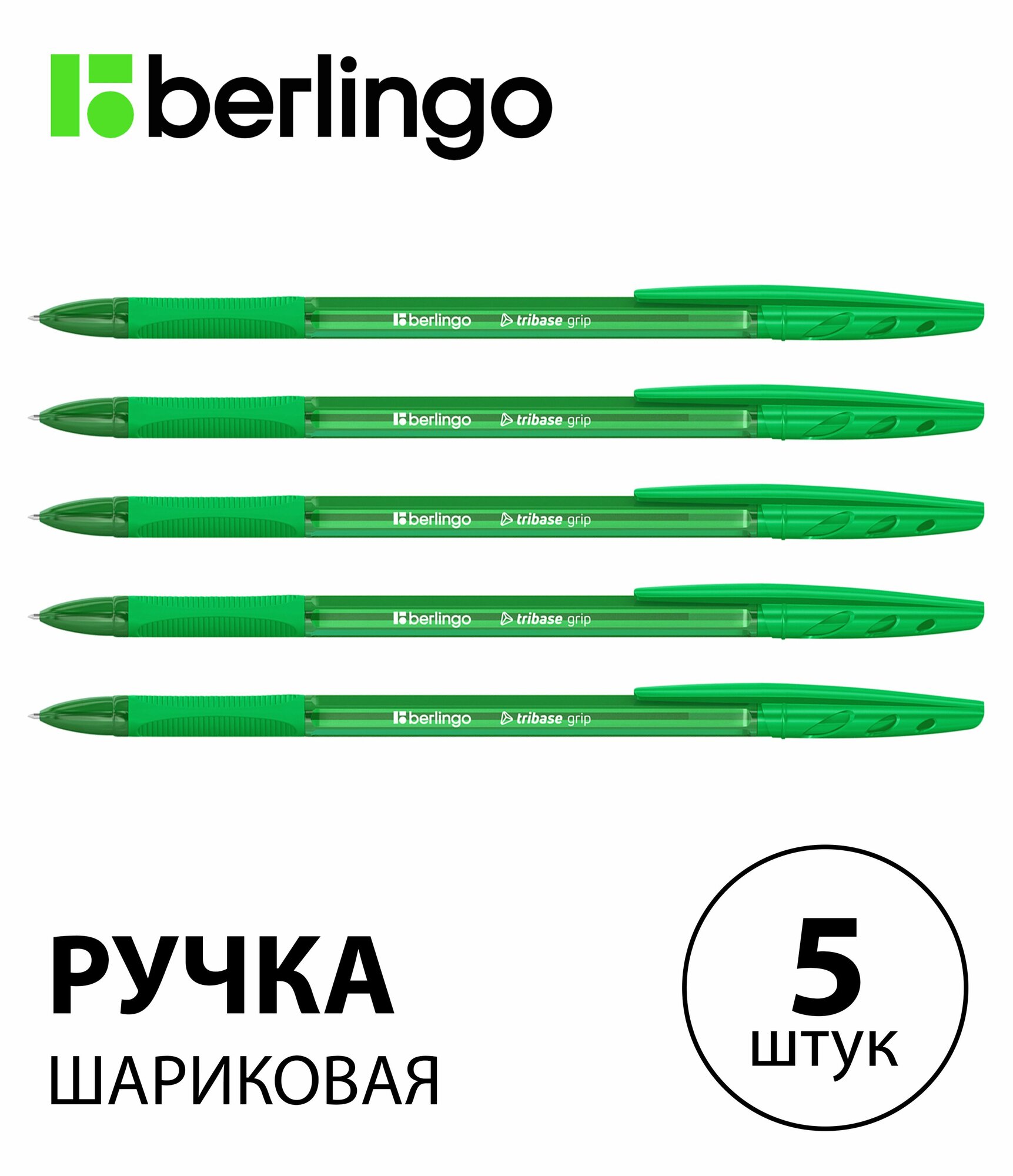 Купить Набор 5 шт. - Ручка шариковая Berlingo "Tribase grip" зеленая, 1,0 мм, с грипом CBp_10972