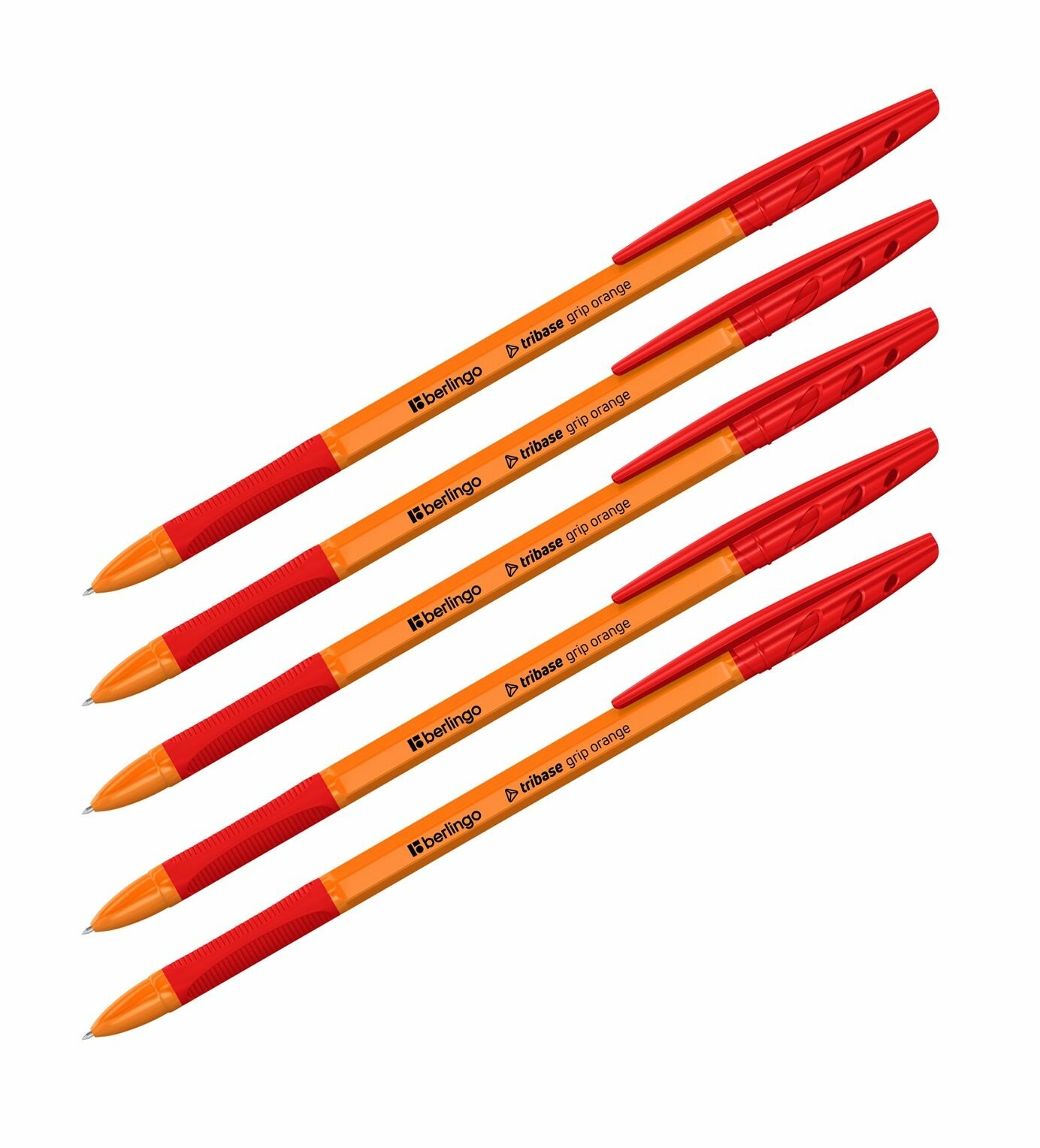 Купить Набор 5 шт. - Ручка шариковая Berlingo "Tribase grip orange" красная, 0,7 мм, с грипом CBp_70963
