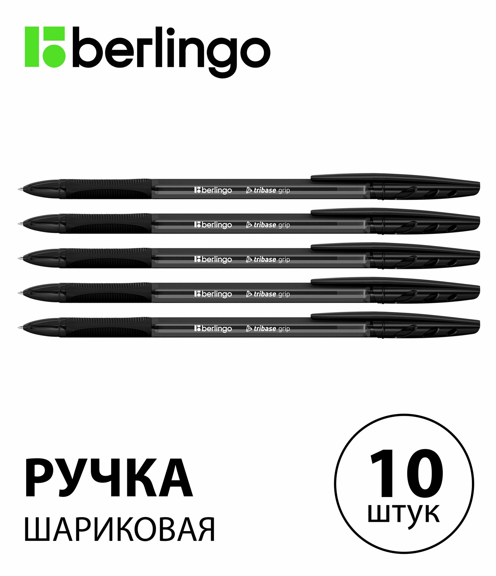 Купить Набор 10 шт. - Ручка шариковая Berlingo "Tribase grip" черная, 1,0 мм, с грипом CBp_10974