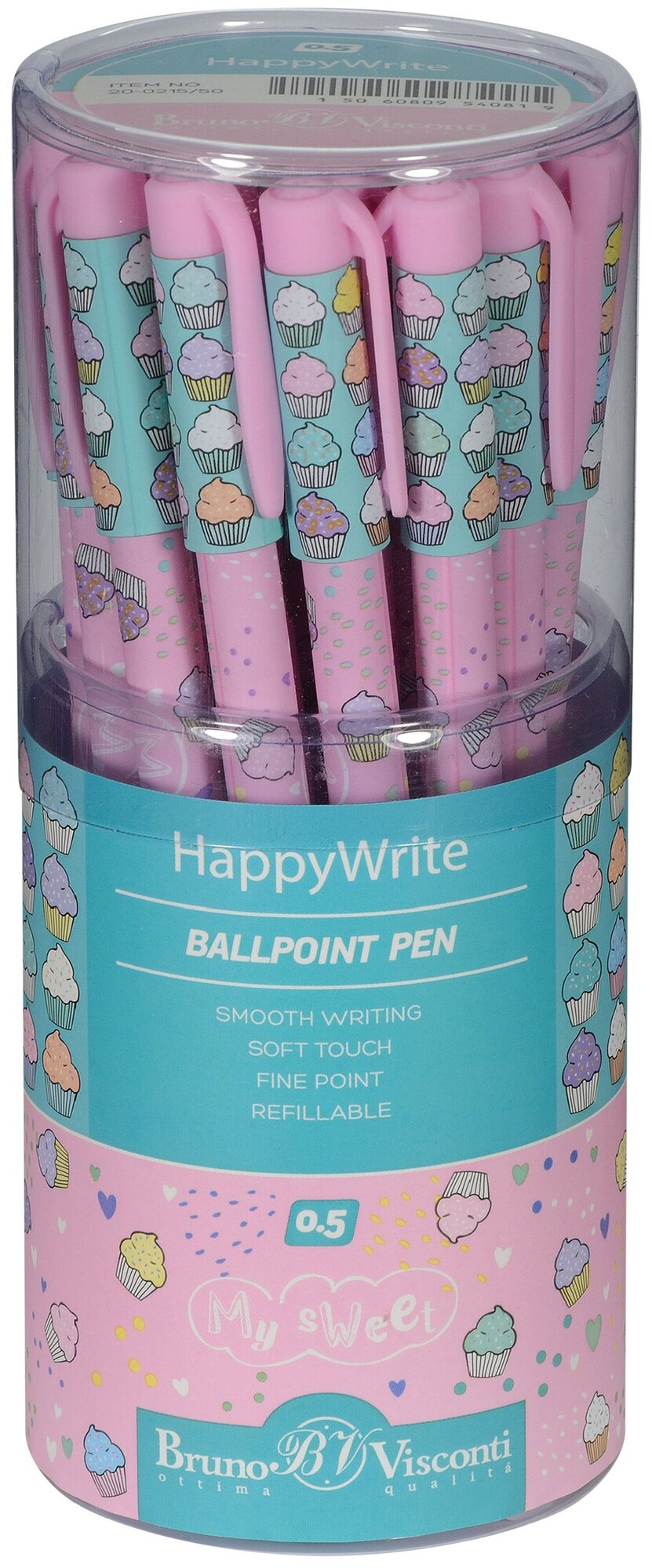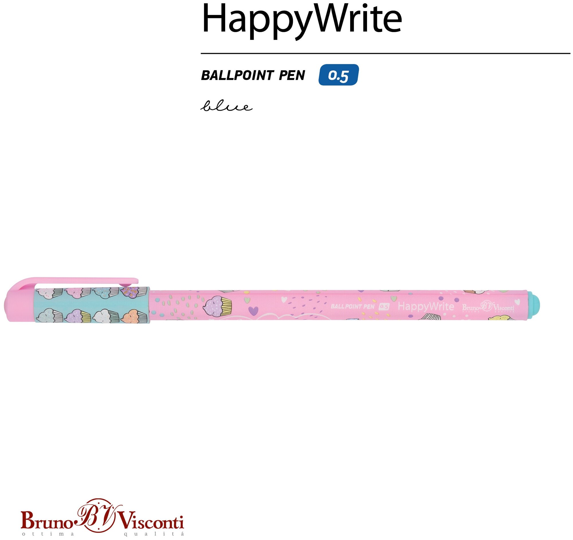 Ручка BrunoVisconti, шариковая, 0.5 мм, синяя, HappyWrite «капкейки», Арт. 20-0215/50 интересное: