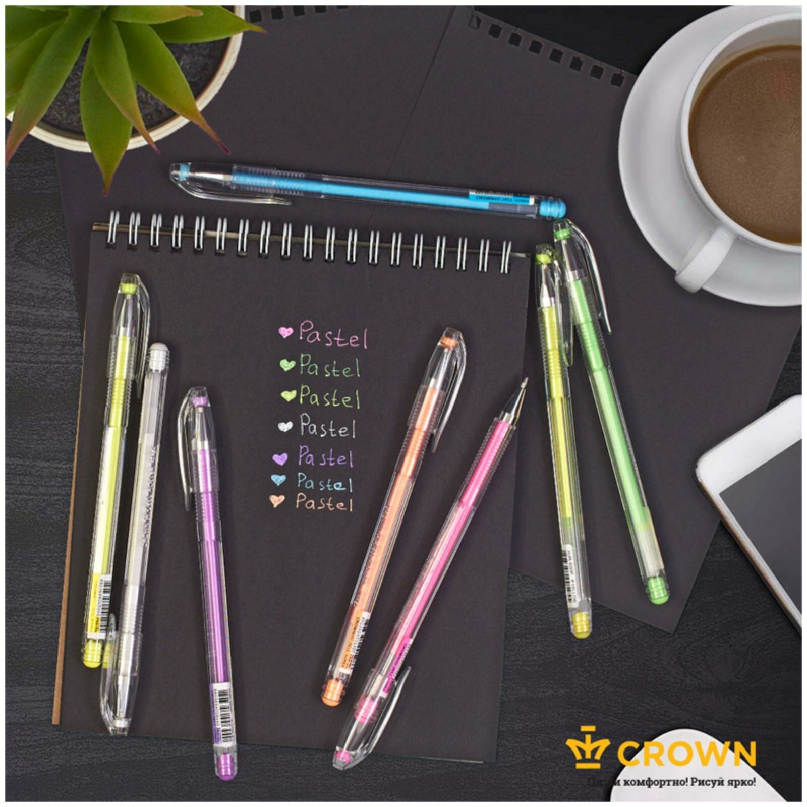 Crown Набор гелевых ручек Crown "Hi-Jell Metallic" 6 цв, 0,8мм, блистер интересное:
