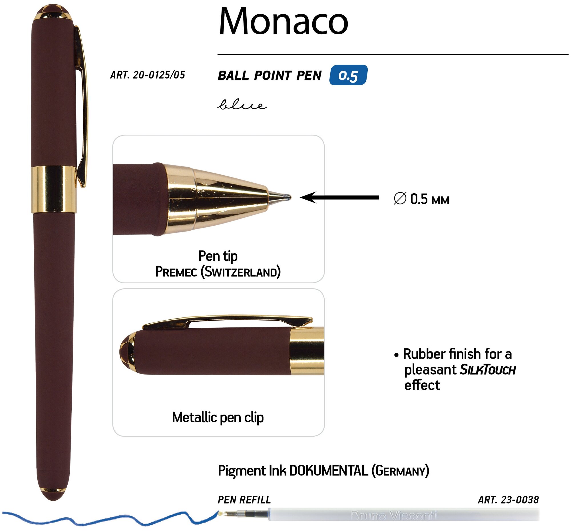 Ручка шариковая BrunoVisconti, 0,5 мм, синяя, Monaco (коричневый корпус), Арт. 20-0125/05 интересное: