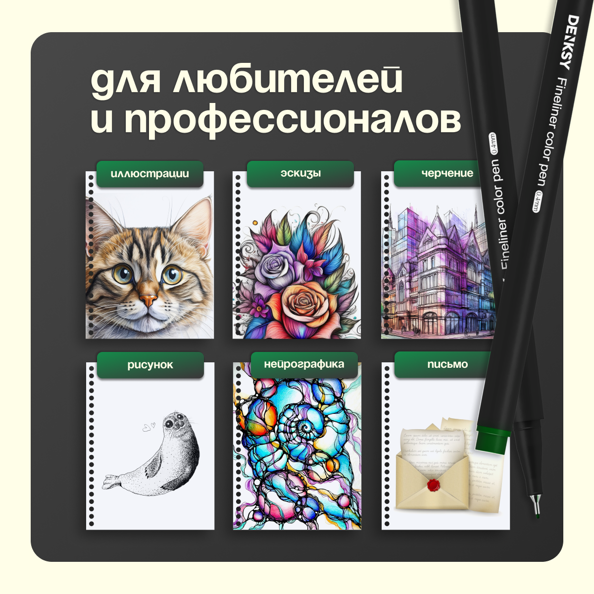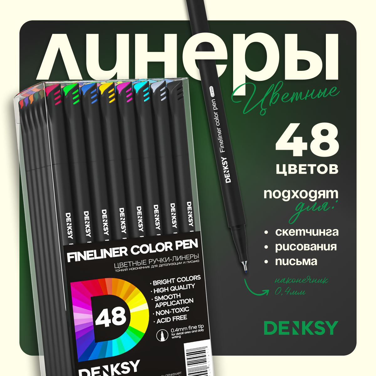 Набор линеров DENKSY, 48 штук, капиллярные ручки, толщина линии 0,4 мм, водостойкие интересное: