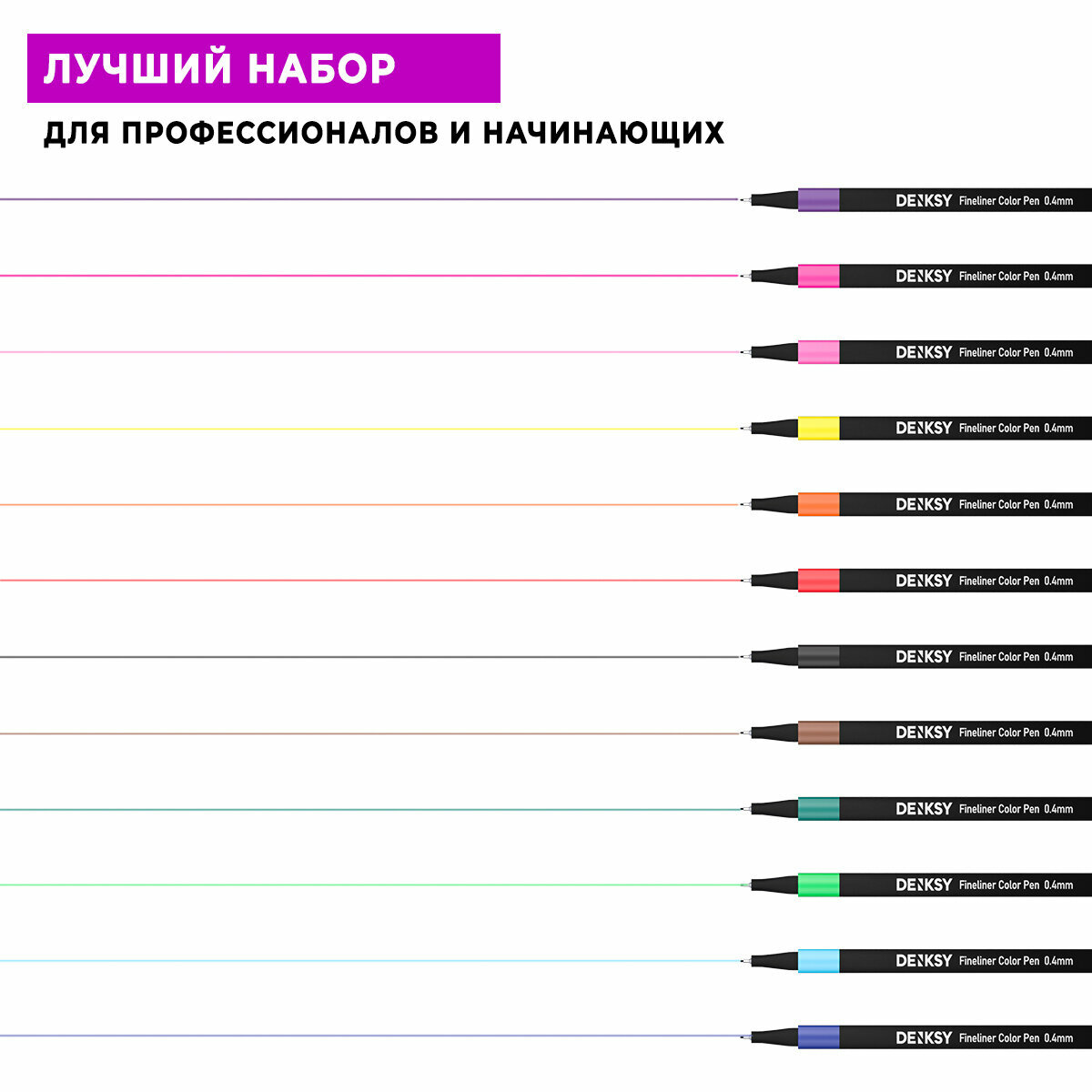 Набор капиллярных ручек DENKSY, 12 ярких цветов, линия 0.4мм интересное: