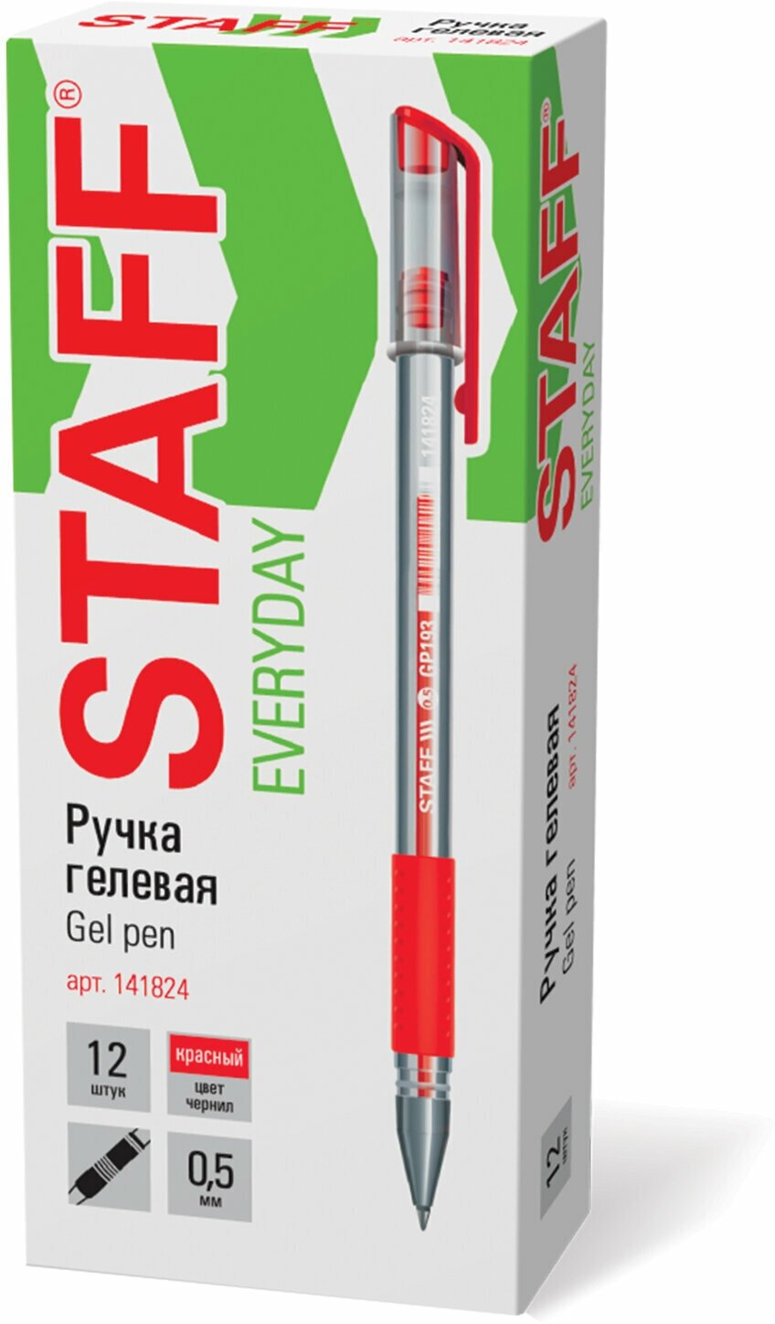 Ручка гелевая Staff Everyday Gp-193, красная, Выгодный Комплект 12 штук, линия 0,35мм, 880734 интересное: