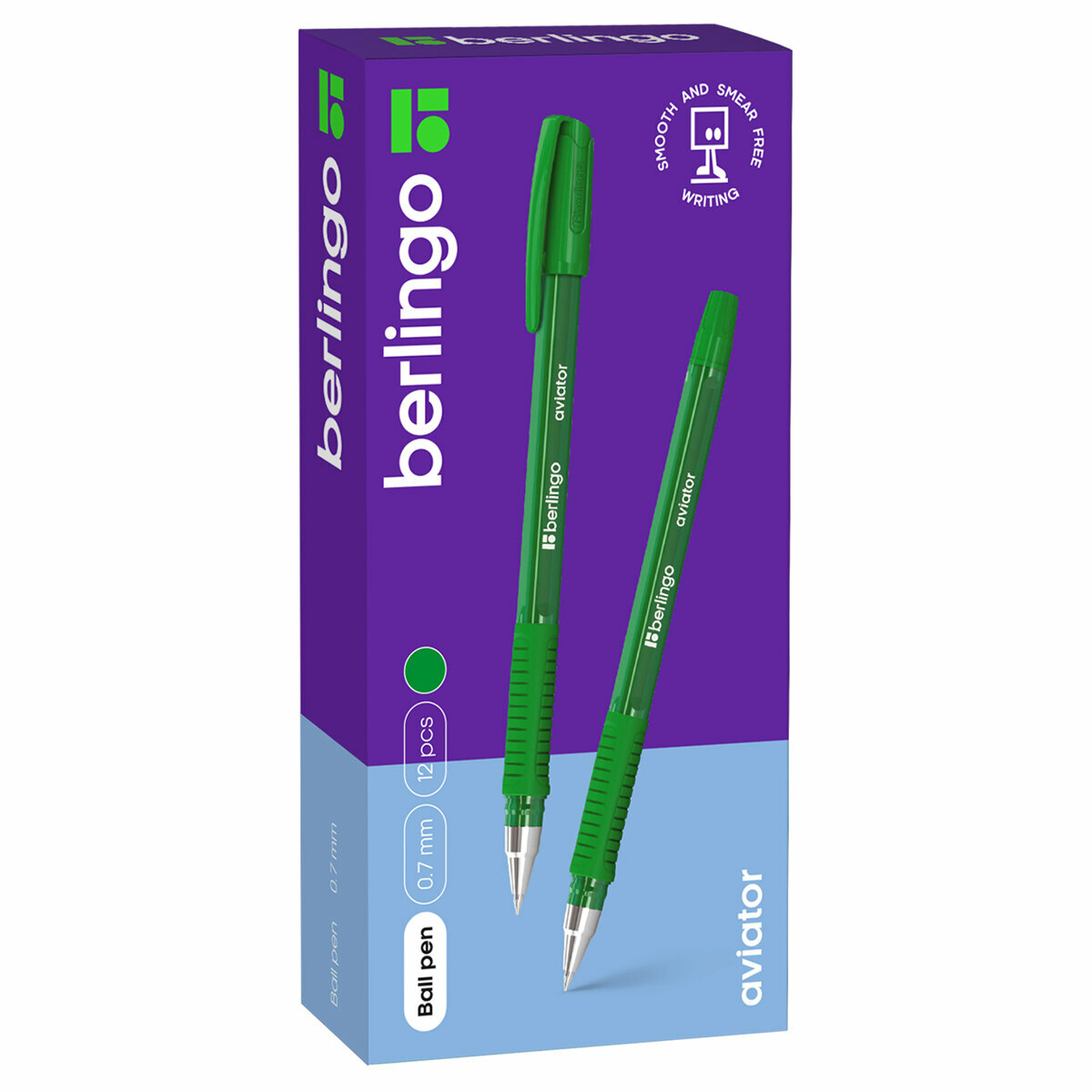Купить Ручка шариковая Berlingo "Aviator" зеленая, 0,7мм, грип, 12 шт. в упаковке