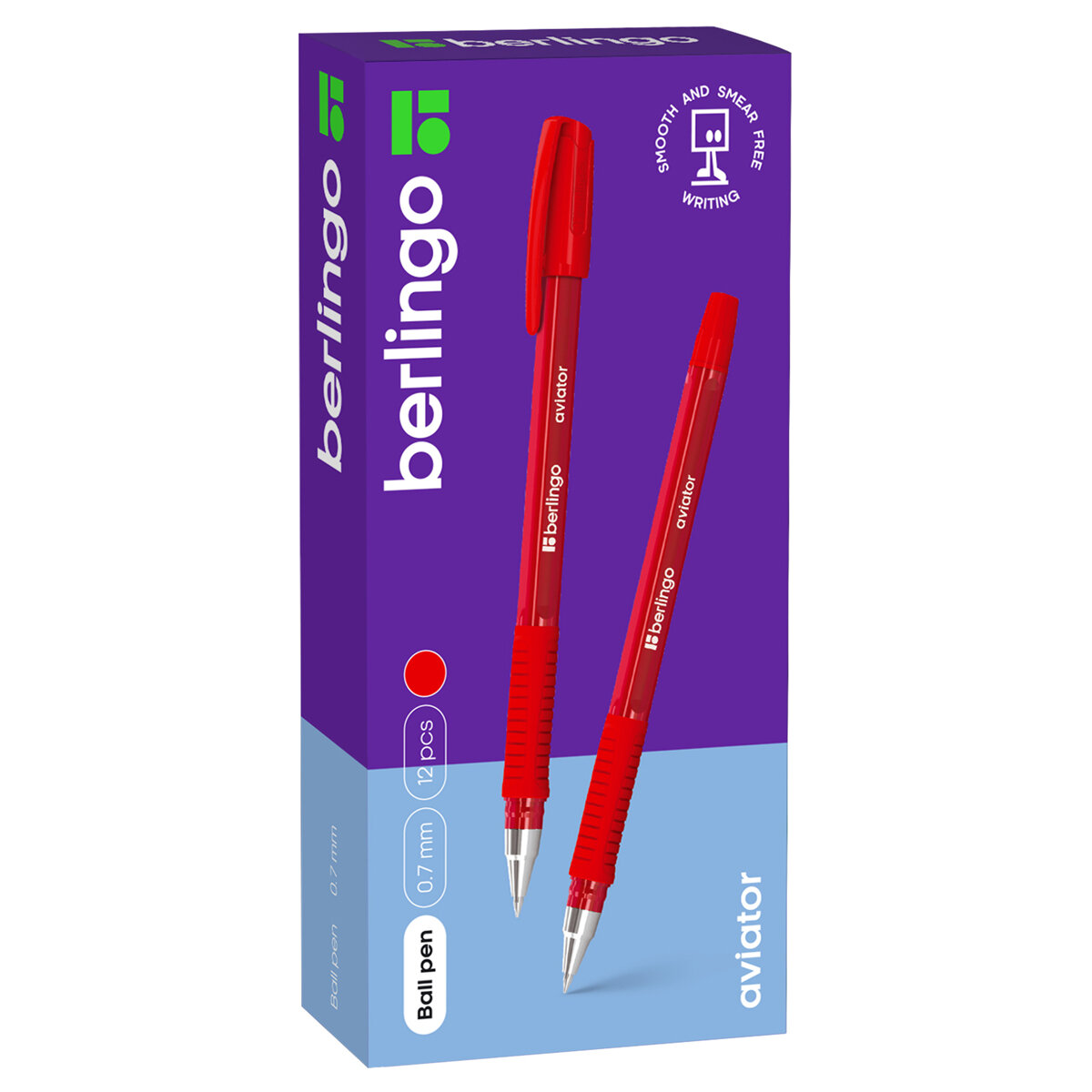 Набор 12 шт. - Ручка шариковая Berlingo "Aviator" красная, 0,7 мм, с грипом CBp_07509