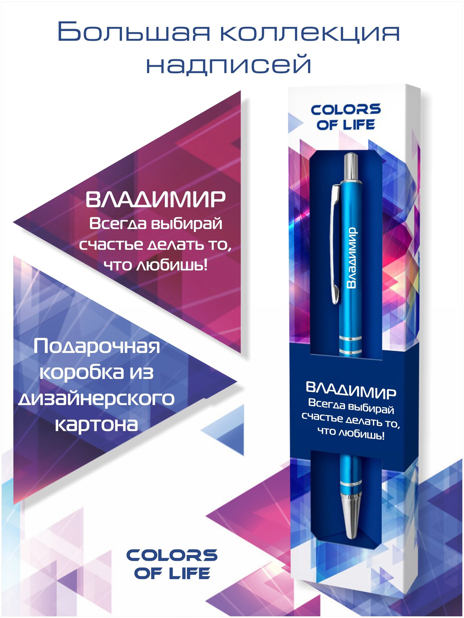 Купить Ручка шариковая именная Colors of life с именем "Владимир" (44)