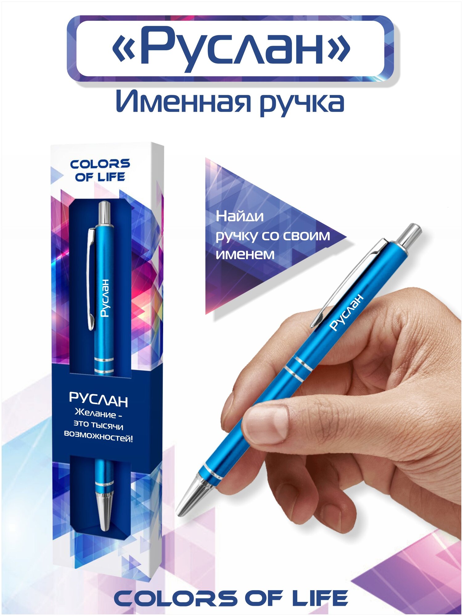 Купить Ручка шариковая именная Colors of life с именем "Руслан" (77)