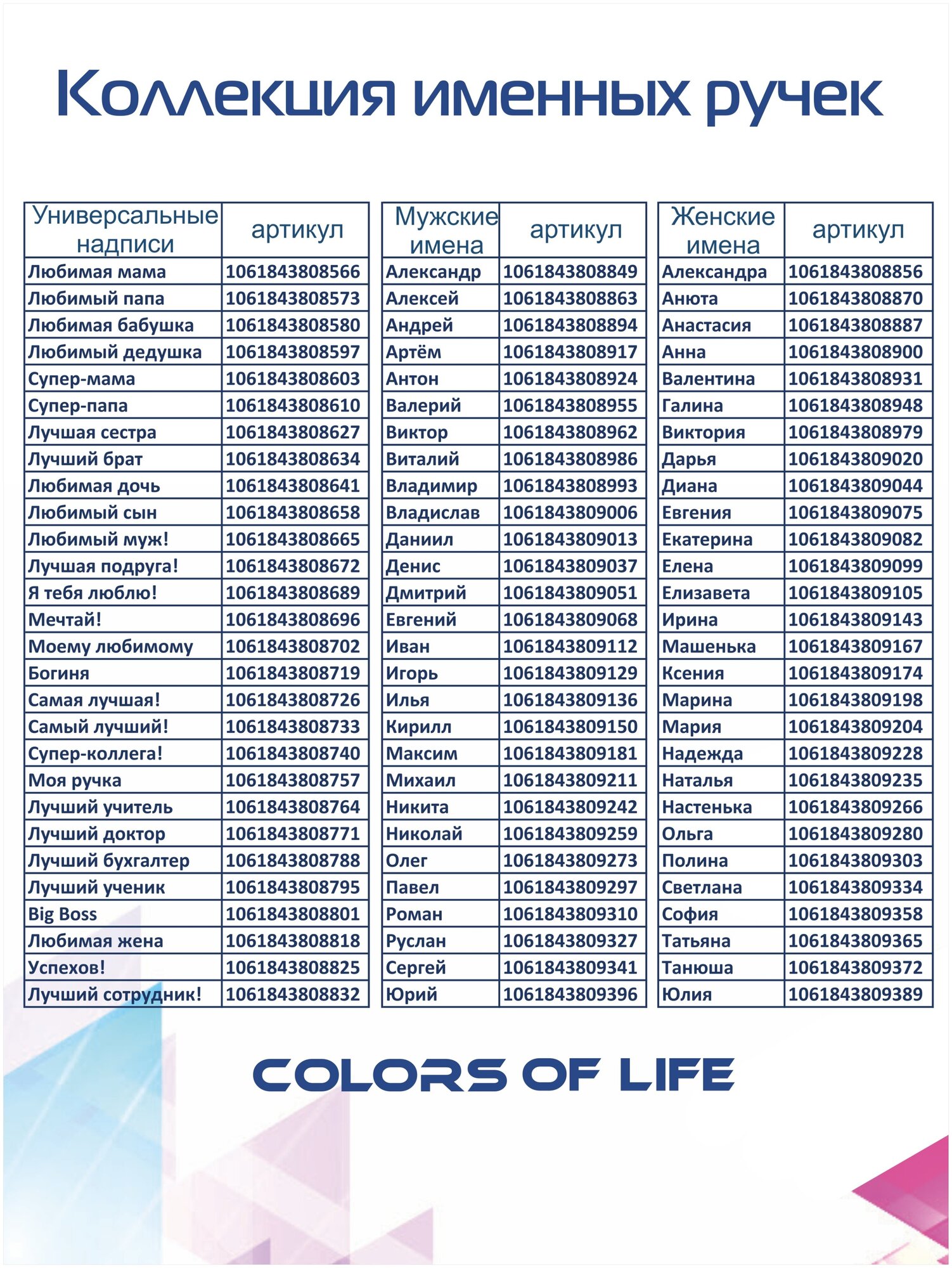Ниже Вы можете прочитать отзывы на Ручка шариковая именная Colors of life с именем "Руслан" (77), ознакомится с подробными характеристиками, посмотреть интересные обзоры и фотографии на Ручка шариковая именная Colors of life с именем "Руслан" (77).
