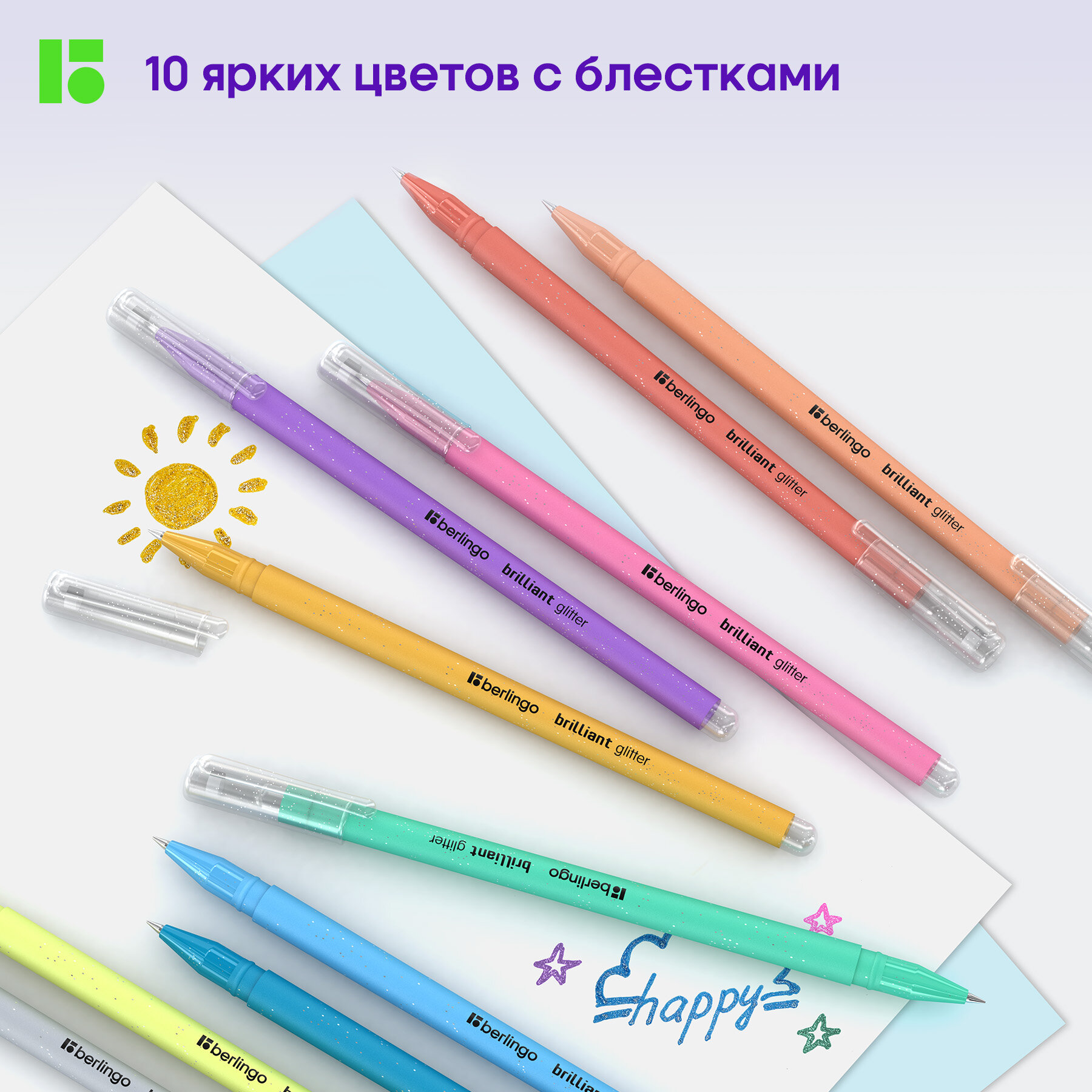 Набор гелевых ручек Berlingo "Brilliant Glitter" 10шт, 10цв, 1 мм, корпус ассорти интересное: