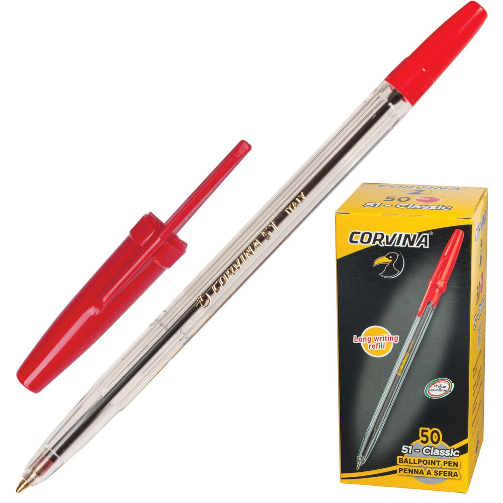 Купить Набор ручек шариковых "Corvina 51", красная, 1мм, прозрачный корпус, 50 штук