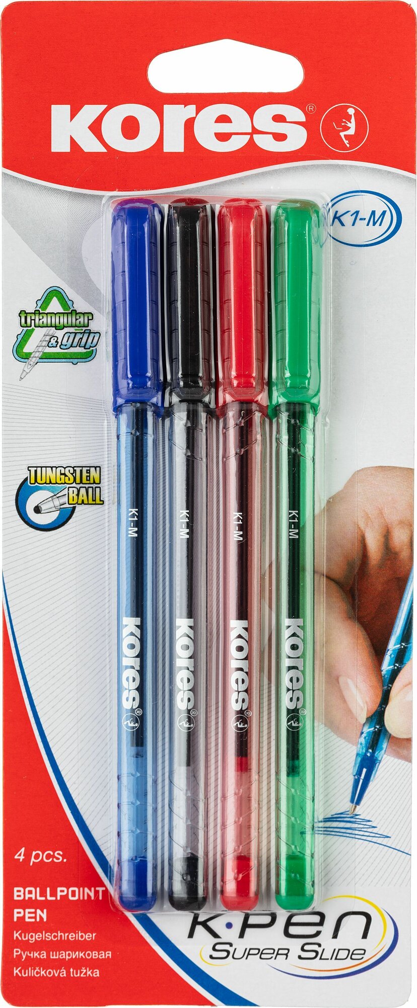 Купить Ручки шариковые Kores, цветные, линия 0,7 мм, набор 4 шт