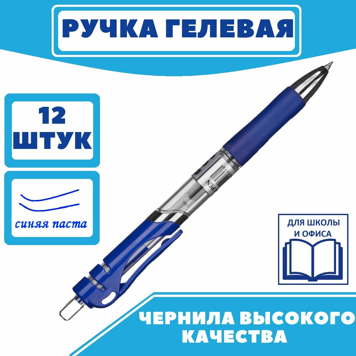 Ручка гелевая автоматическая Attache Hammer (0.5мм, синяя, резиновая манжетка), 12шт. интересное: