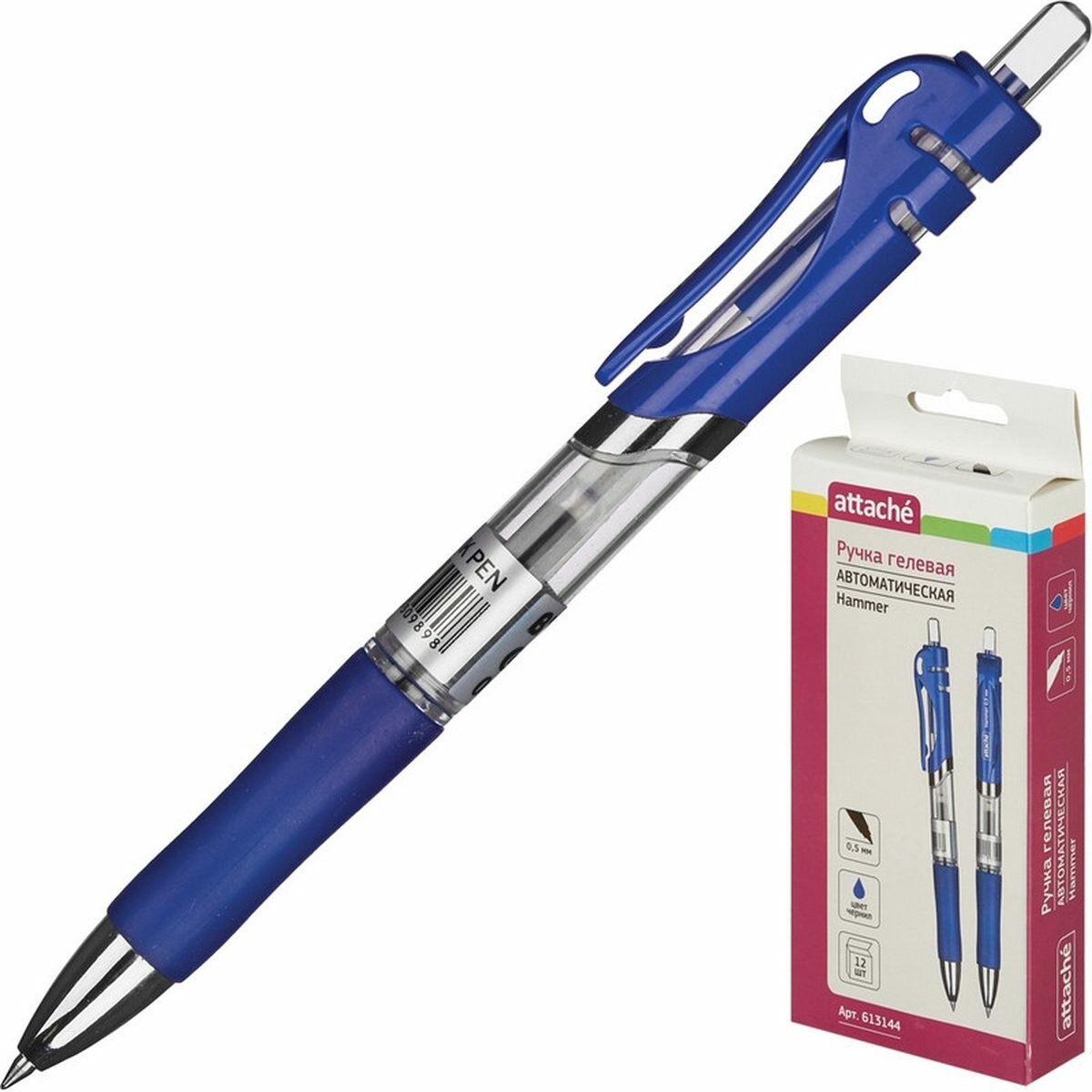 Купить Ручка гелевая автоматическая Attache Hammer (0.5мм, синяя, резиновая манжетка), 12шт.