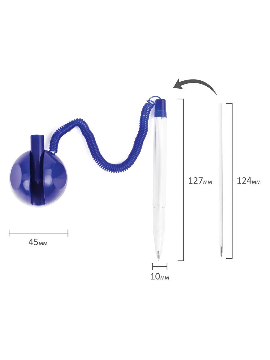 Ручка шариковая настольная Brauberg Стенд-пен (0.5мм, корпус синий, синяя, на пружинке) (140195), 100шт.