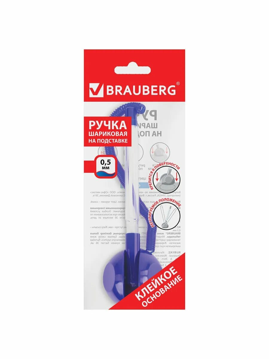 Ручка шариковая настольная BRAUBERG "Стенд-Пен", синяя, пру