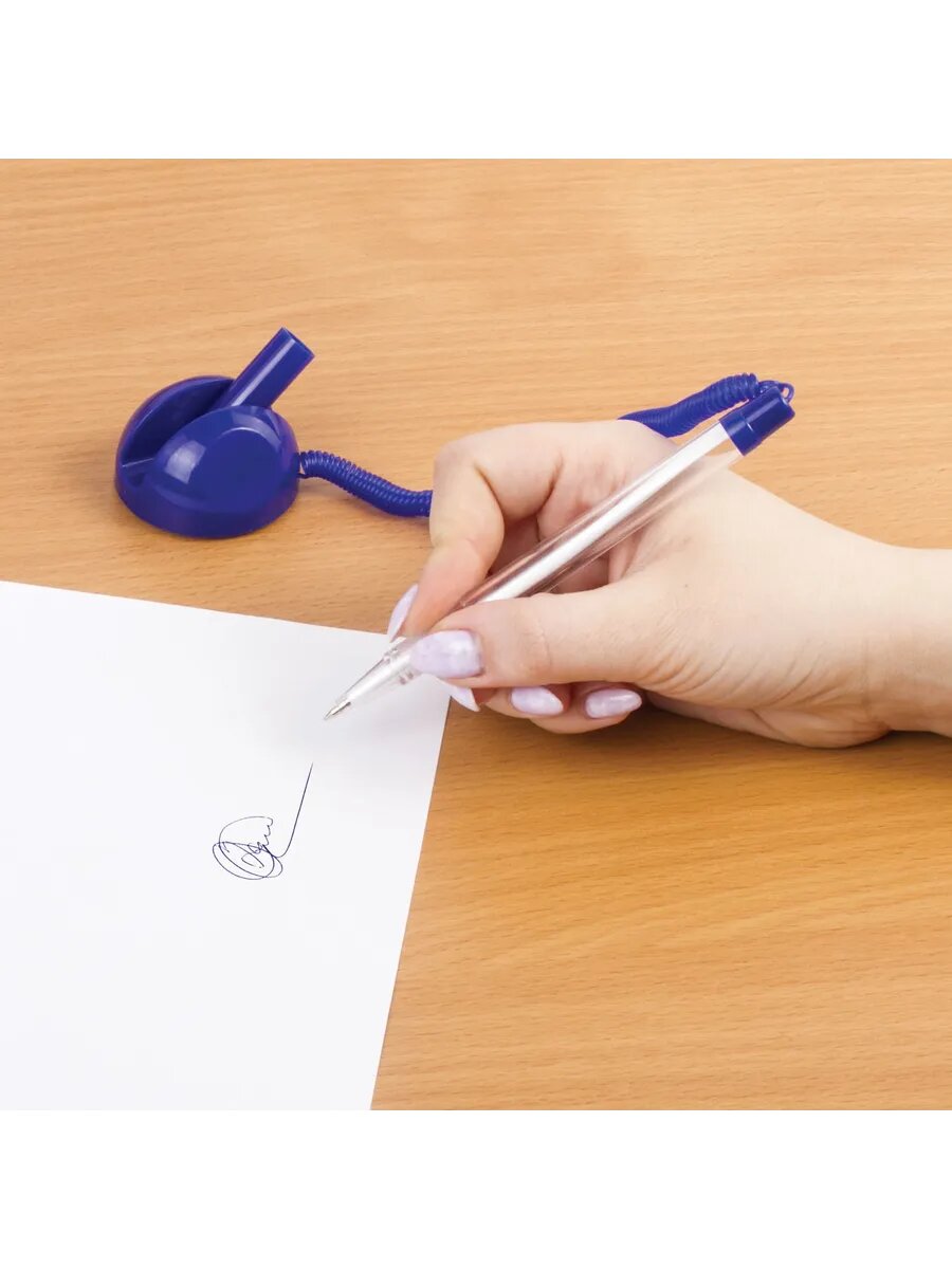 Ручка шариковая настольная BRAUBERG "Стенд-Пен", синяя, пружинка, корпус синий, линия 0,5 мм, 140195