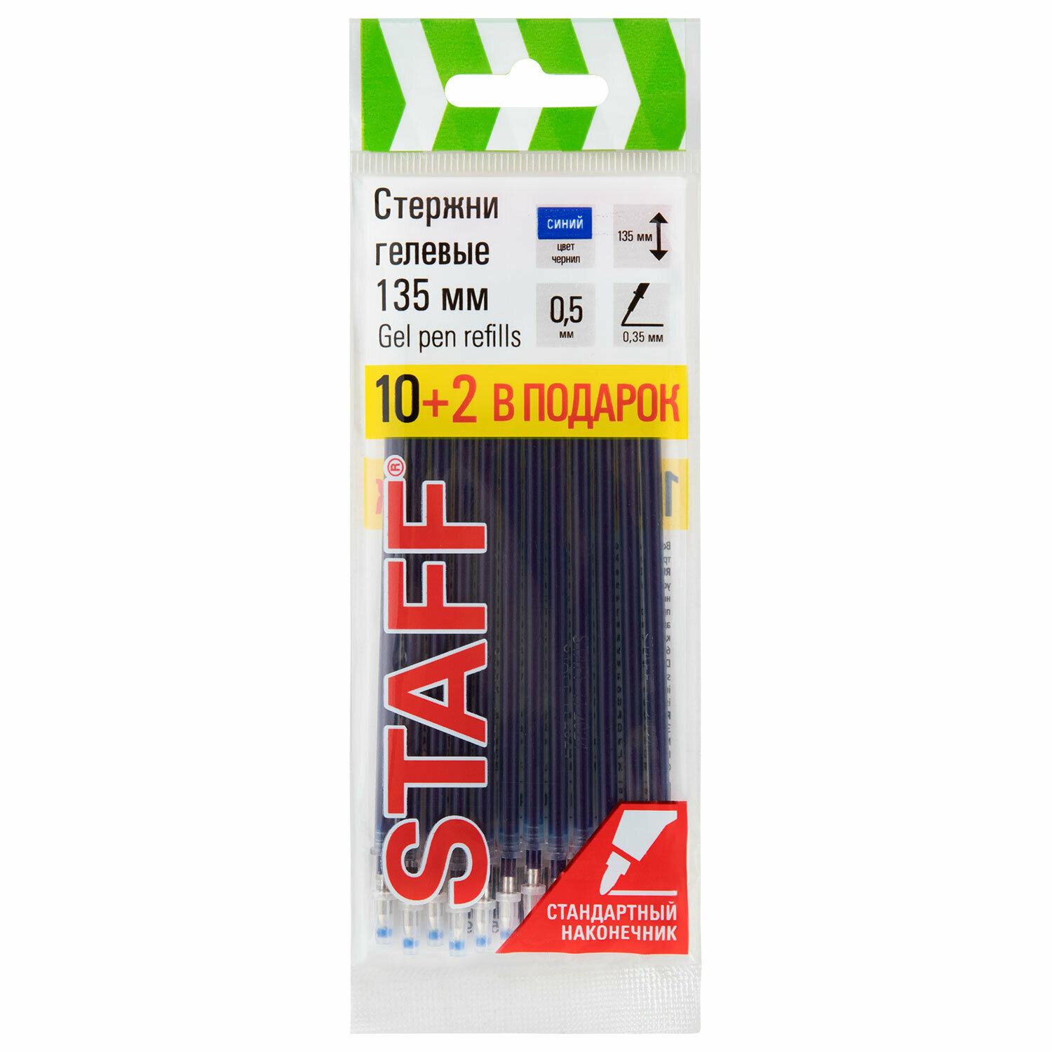 Купить Стержни для гелевых ручек синие 135 мм набор 12 штук, игольчатый узел 0,5 мм, линия письма 0,35 мм, Staff, 170410